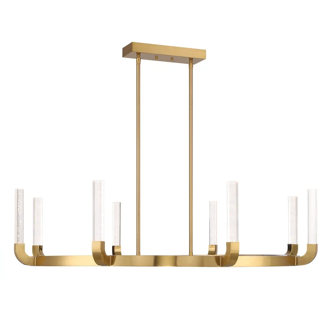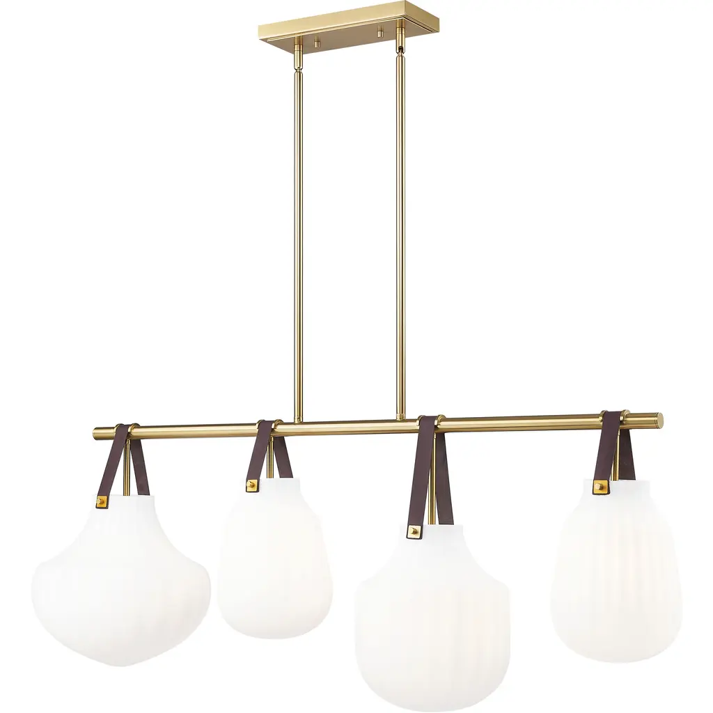 The Pebble Chandelier by Hudson Valley Lighting makes a sophisticated statement with a simple, elegant composition. Smooth, elliptical glass shades with etched interiors diffuse a lovely layer of light from candelabras, each one balanced between a pair of slender metal arms that extend to create an airy, grid-like frame. Crisp and contemporary, this chandelier is suspended by a thin set of cables and a square canopy, making a handsome statement in the spaces it brightens.