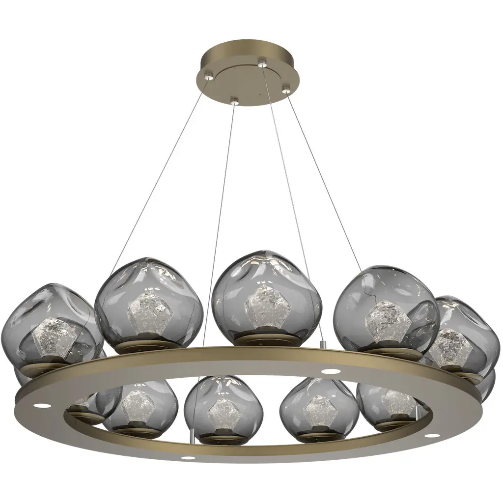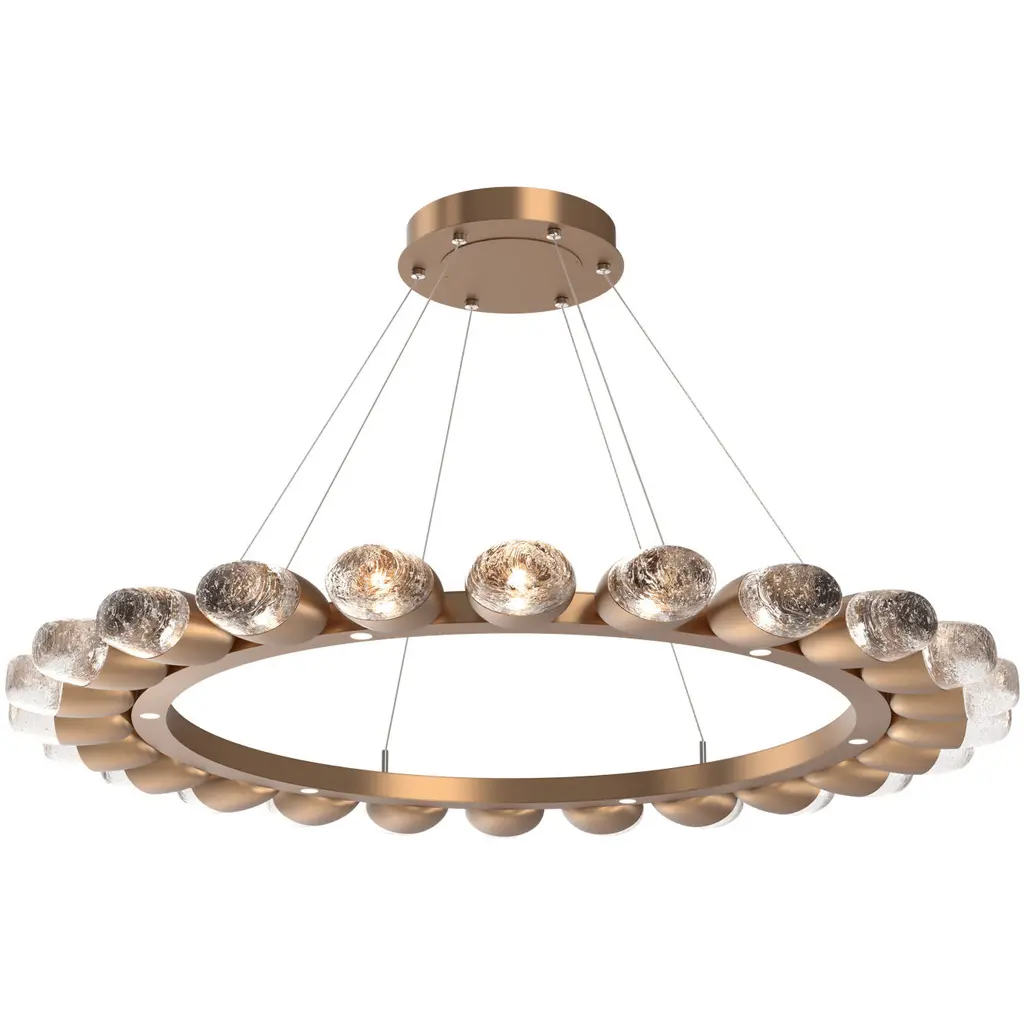 Pebble 48"Ring (24 Small Glass)-Burnished Bronze-Pebble Clear-Stainless Cable-LED 2700K