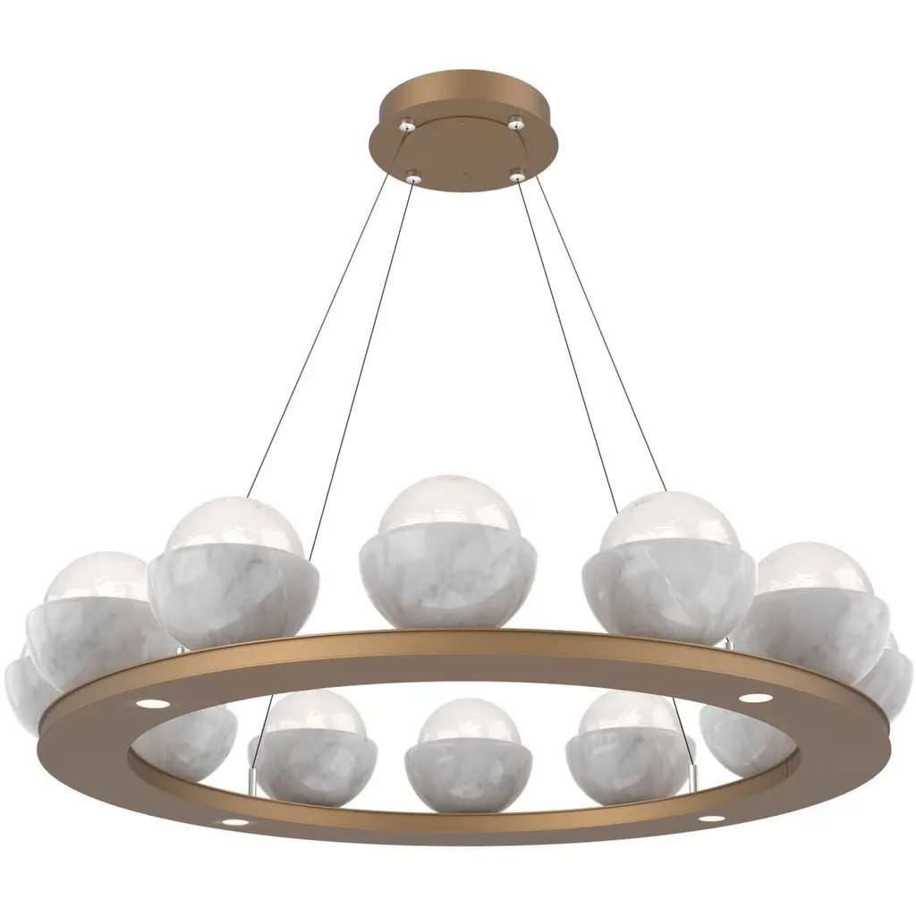 Pebble 36" Ring (16 Small Glass)-Novel Brass-Pebble Clear-Stainless Cable-LED 2700K