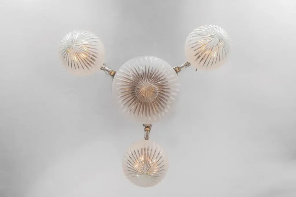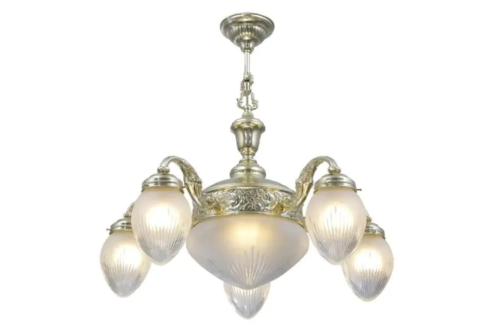 Pecs I is a suspension lamp made of brass available in different finishes.Finishes: Antique, Shiny brass, Matt brass, Shiny nickel, Matt nickel3 armed chandelier- Capacity: 4x75 W E275 armed chandelier - Capacity: 6x75 W E27Pecs is a collection of pendant, wall, table and ceiling lamps made of brass or nickel.
