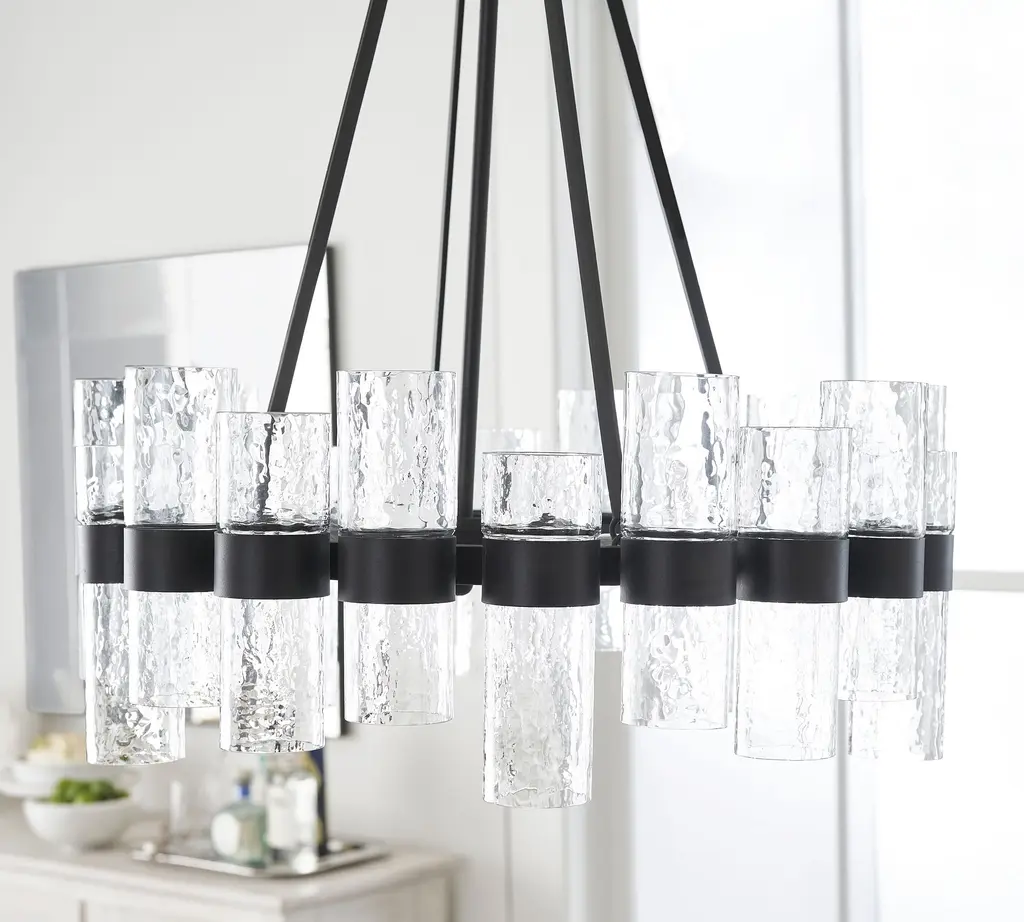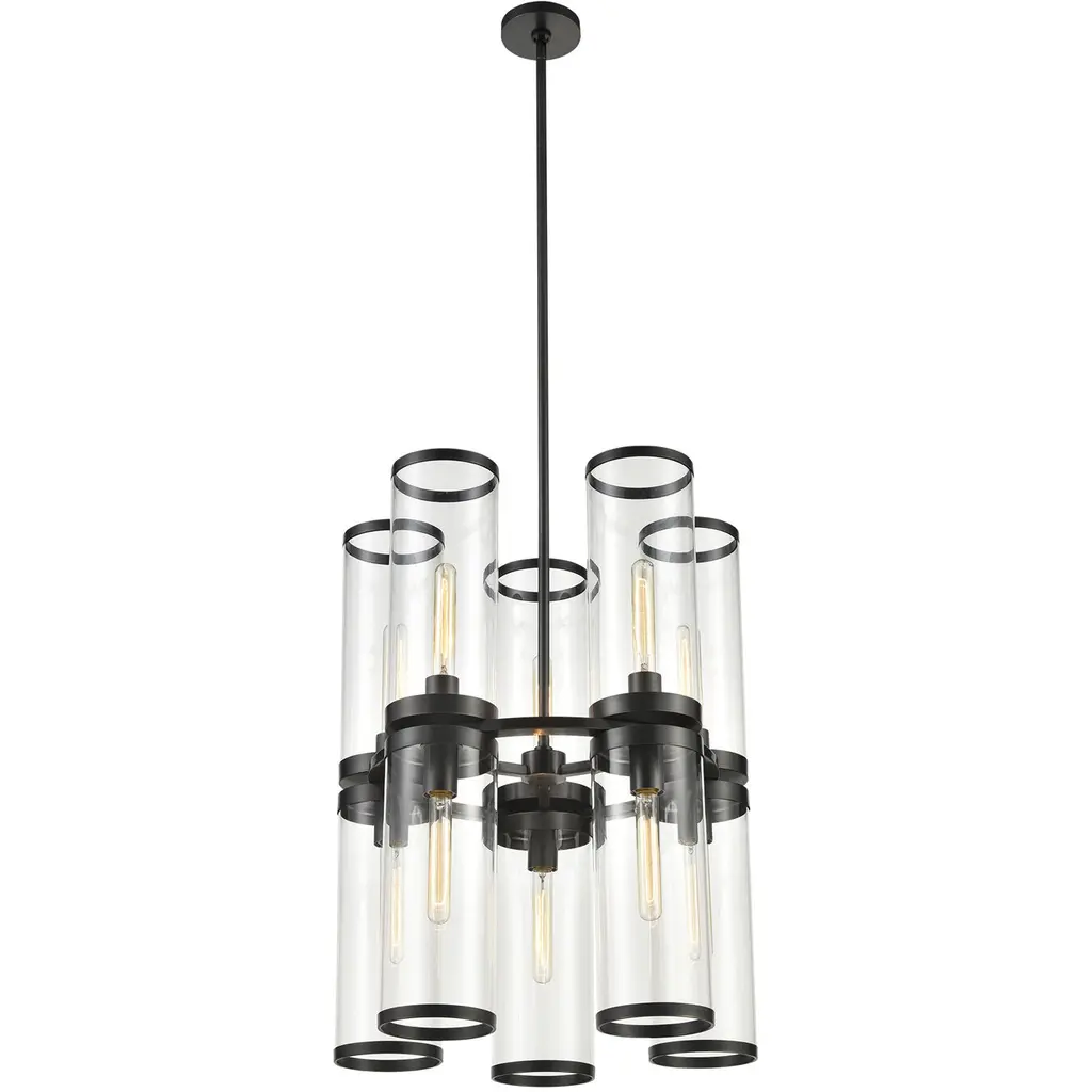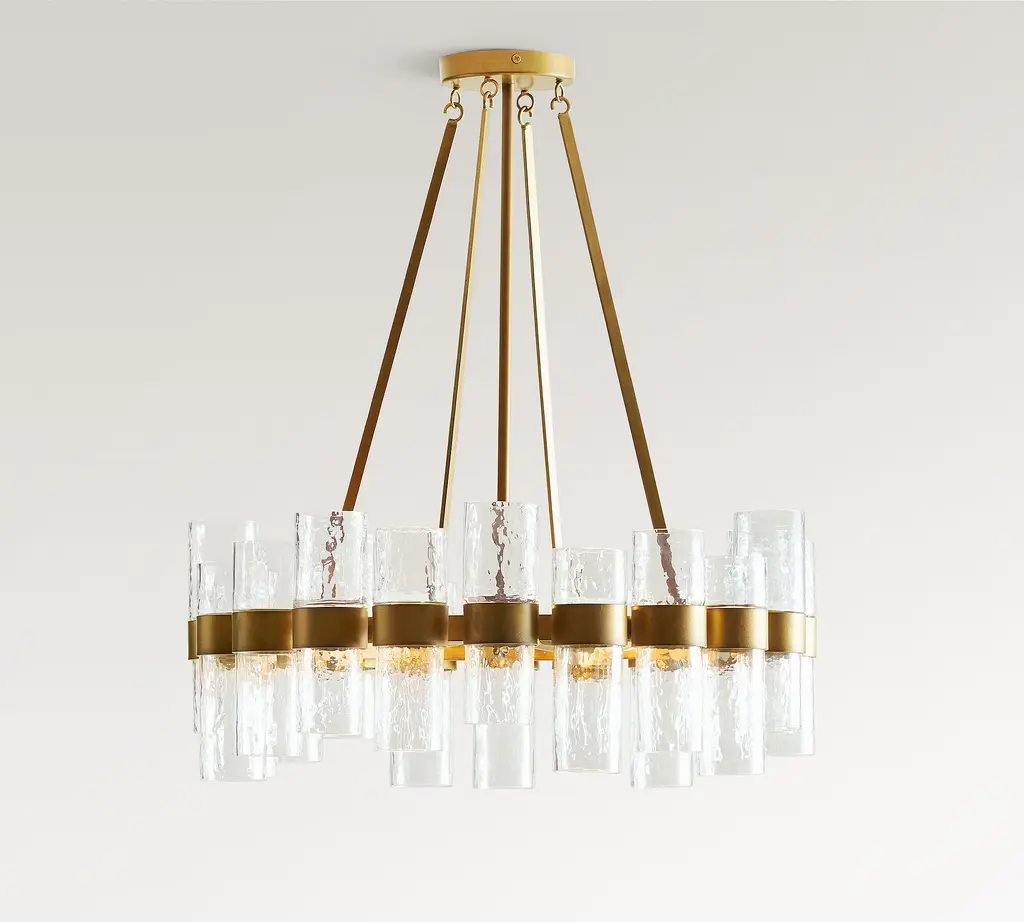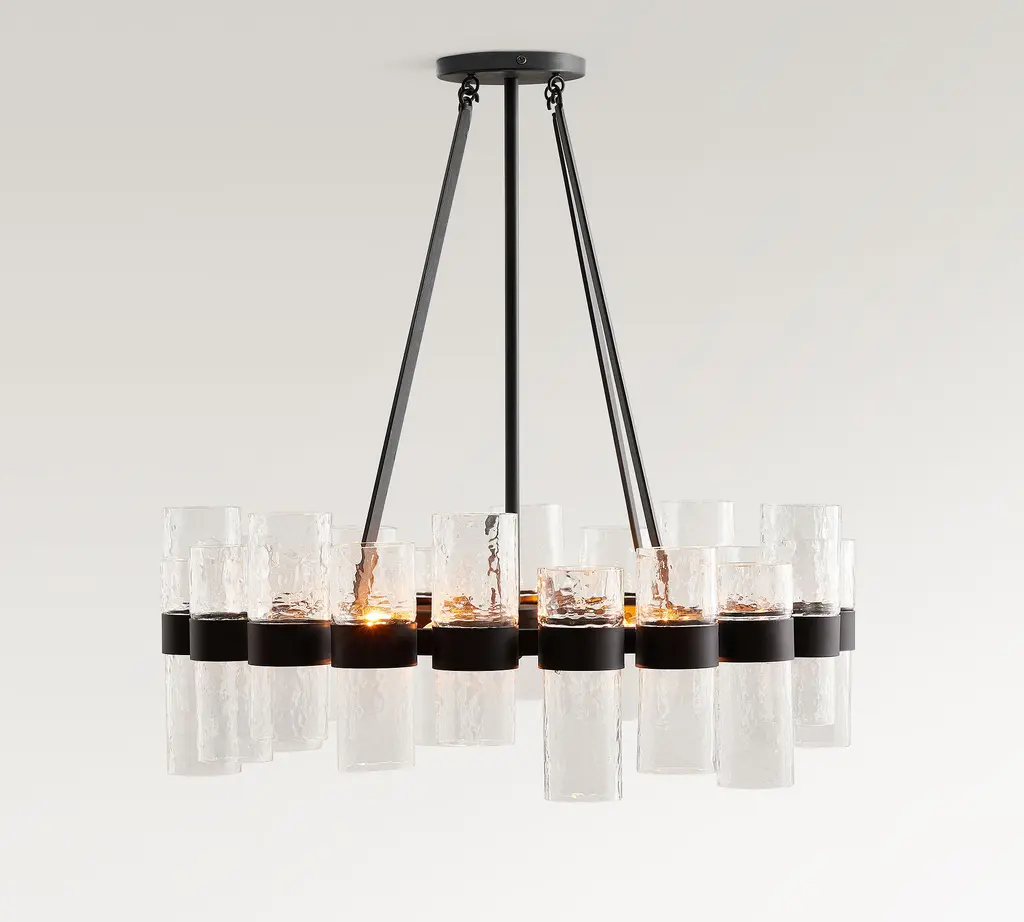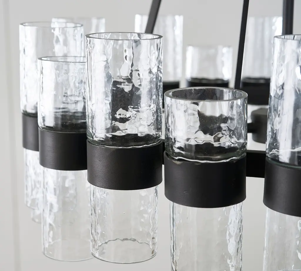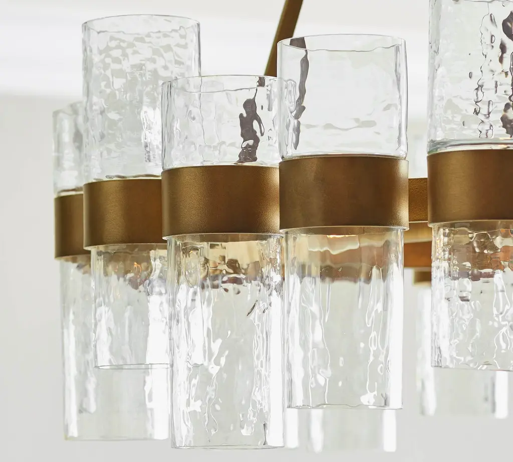 Illuminate your sense of style with our Penni Glass Chandelier. Glass cylinders fit snug within the bronzed-metal sleeves of this eye-catching focal point, glowing with an industrial appeal.