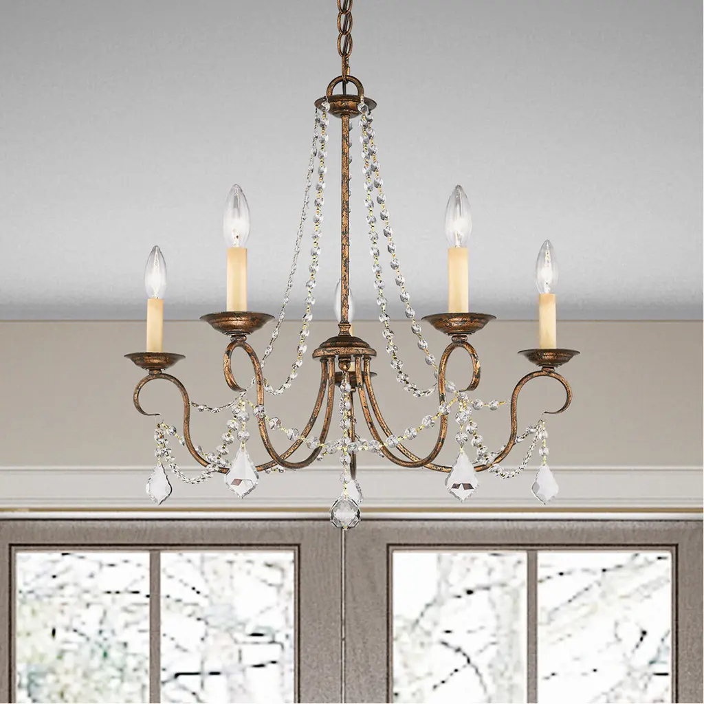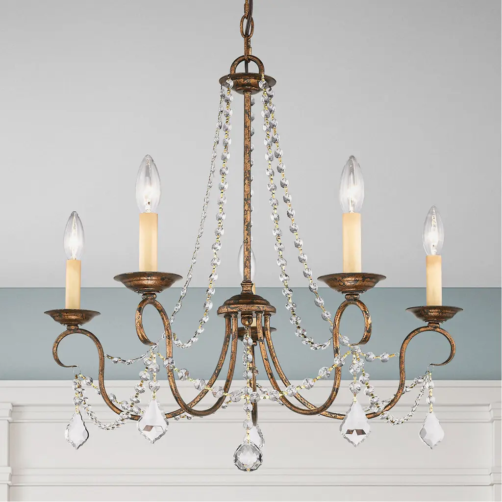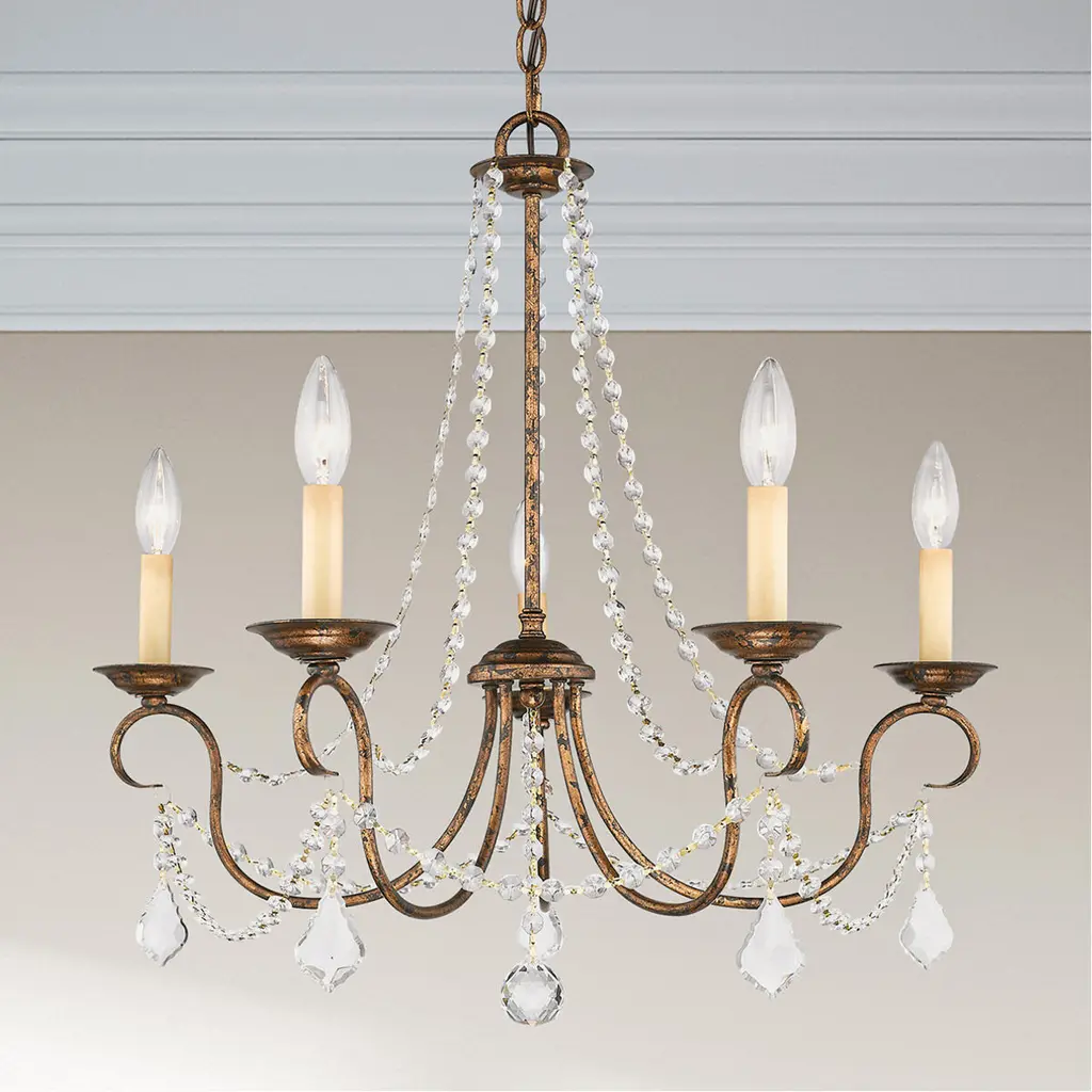 Pennington 5 Light 25 Inch Hand Applied Venetian Golden Bronze Chandelier Ceiling Light
