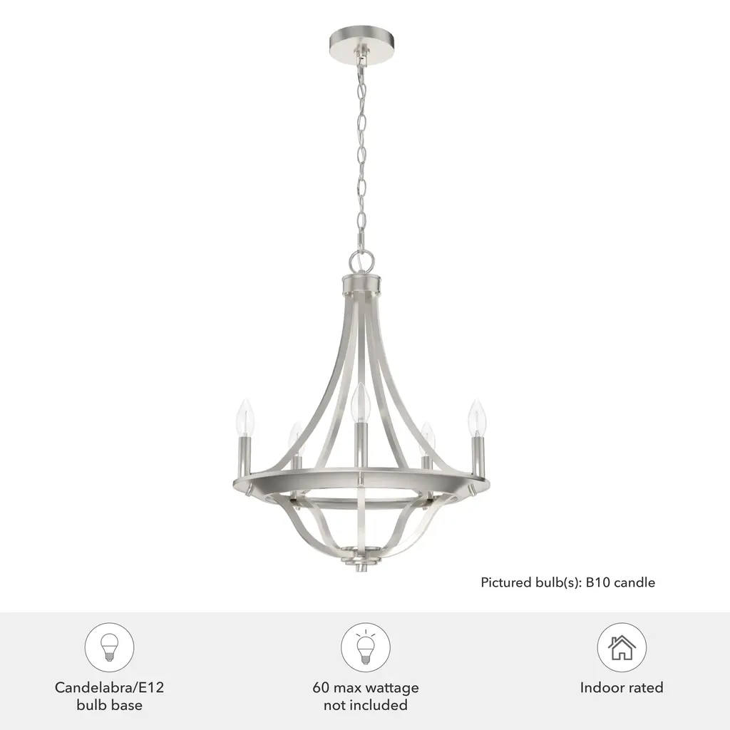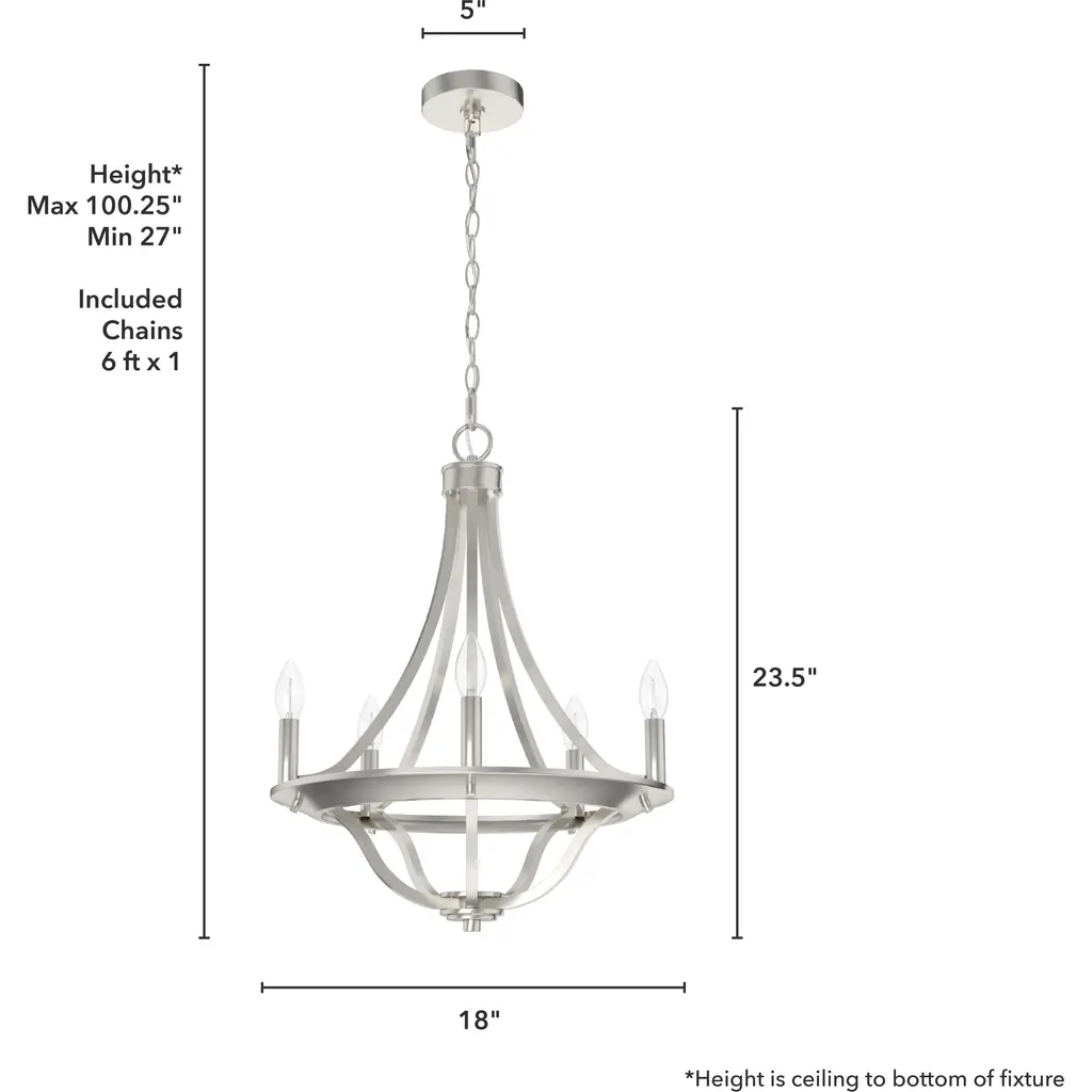 Perch Point 5 Light 24 Inch Brushed Nickel Chandelier Ceiling Light
