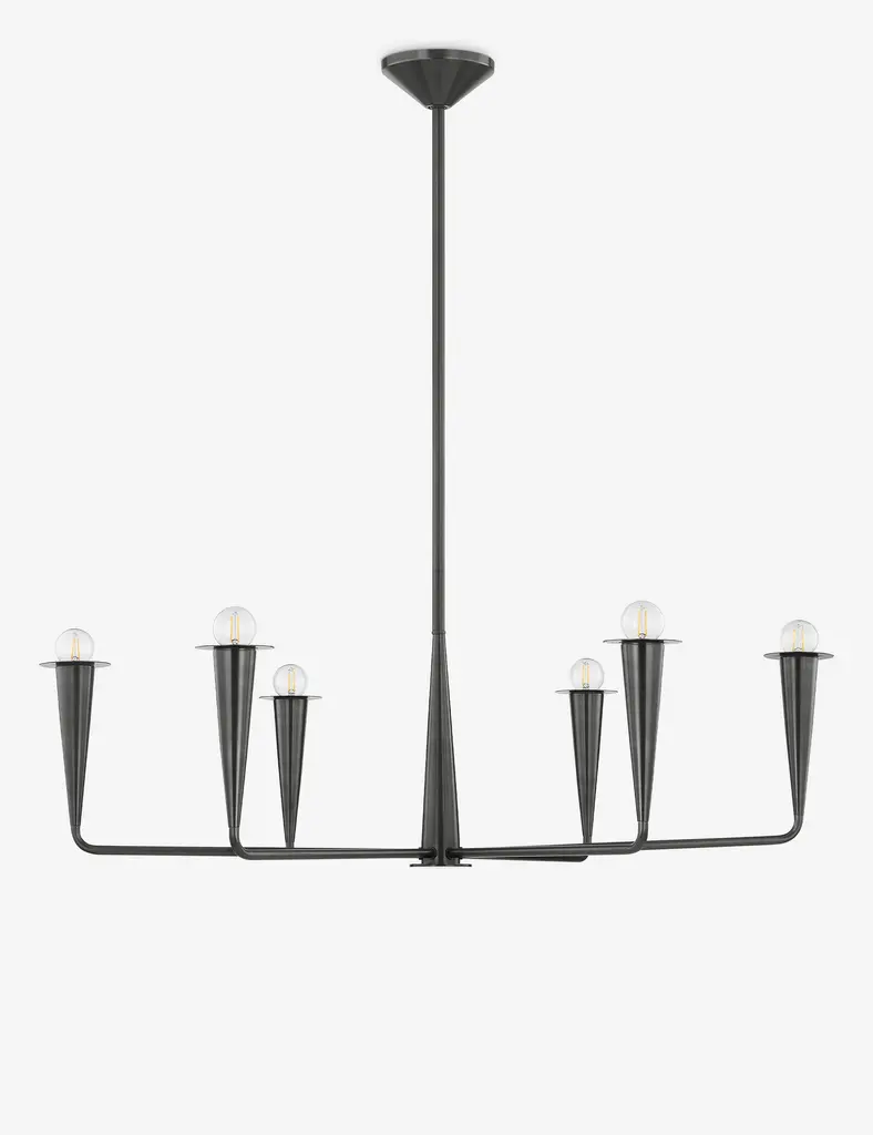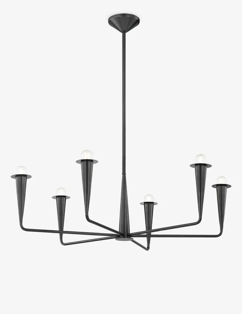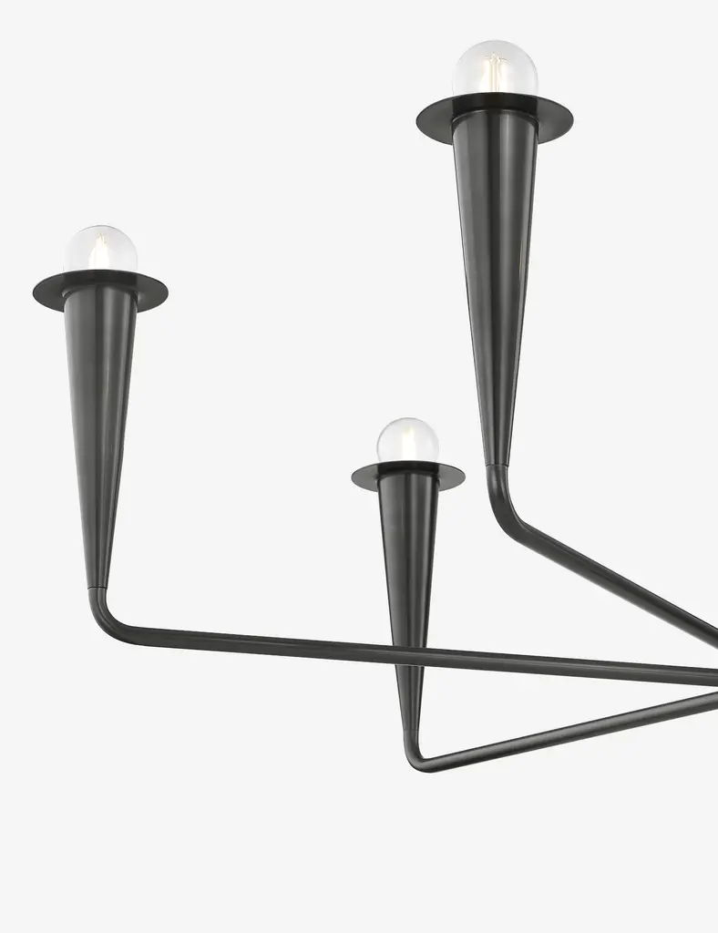 Pere updates the classic candlestick chandelier with a streamlined, modern look. Conical details and a sleek finish complete this chandelier design, offering a refined statement to elevate your entryway, living room, or dining space.