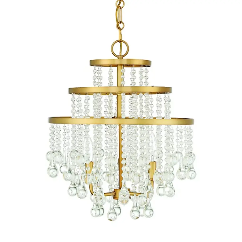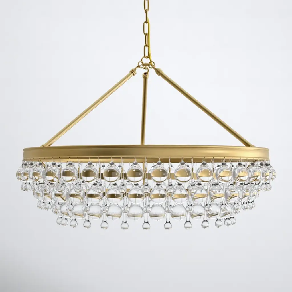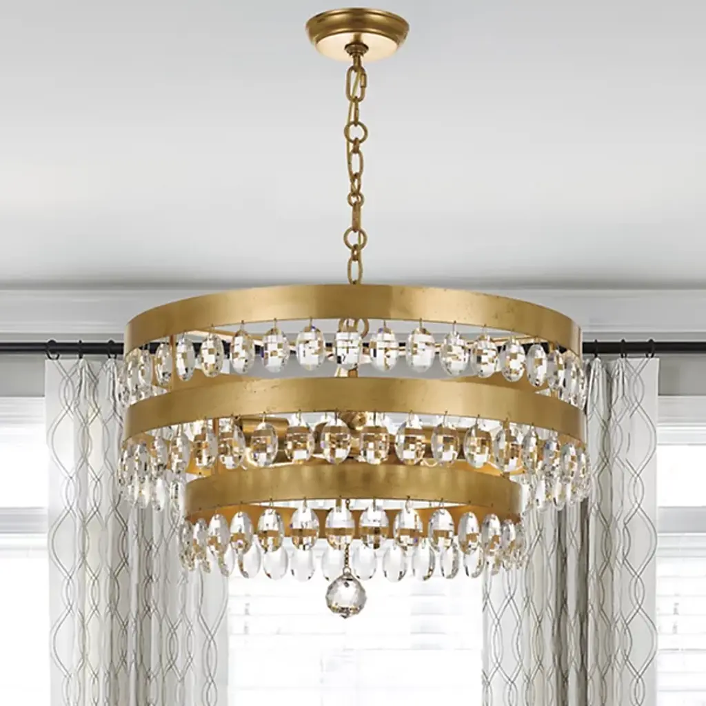 The Crystorama Perla Chandelier takes a traditional material and applies it in a modern context that is fit for a variety of spaces. A series of facet-cut crystals are draped over shimmering ribbons of hand painted wrought iron, the illumination refracting and reflecting throughout the space that has a dynamic effect.