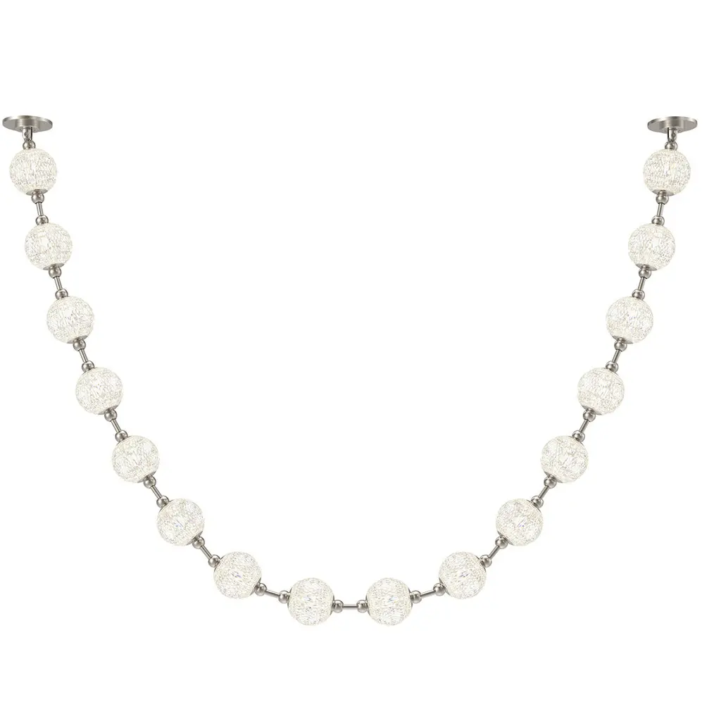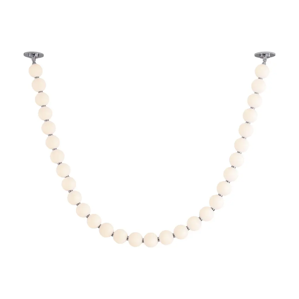 Bring playful appeal to interiors with the clever, ceiling-mounted Perle 84 LED Chandelier from Visual Comfort Modern. A memorable design from Sean Lavin that evokes the intricacy of a pearl necklace writ large, it uses a repeating pattern created by placing LED lamping inside a round milk glass sphere, with contoured metal beads on either side, with the simple, adjustable form able to captivate, while dispensing even warmth with equal ease.