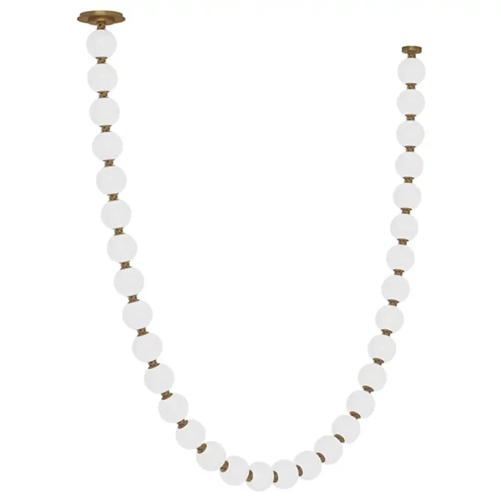 Bring playful appeal to interiors with the clever, ceiling-mounted Perle 84 LED Chandelier from Visual Comfort Modern. A memorable design from Sean Lavin that evokes the intricacy of a pearl necklace writ large, it uses a repeating pattern created by placing LED lamping inside a round milk glass sphere, with contoured metal beads on either side, with the simple, adjustable form able to captivate, while dispensing even warmth with equal ease.