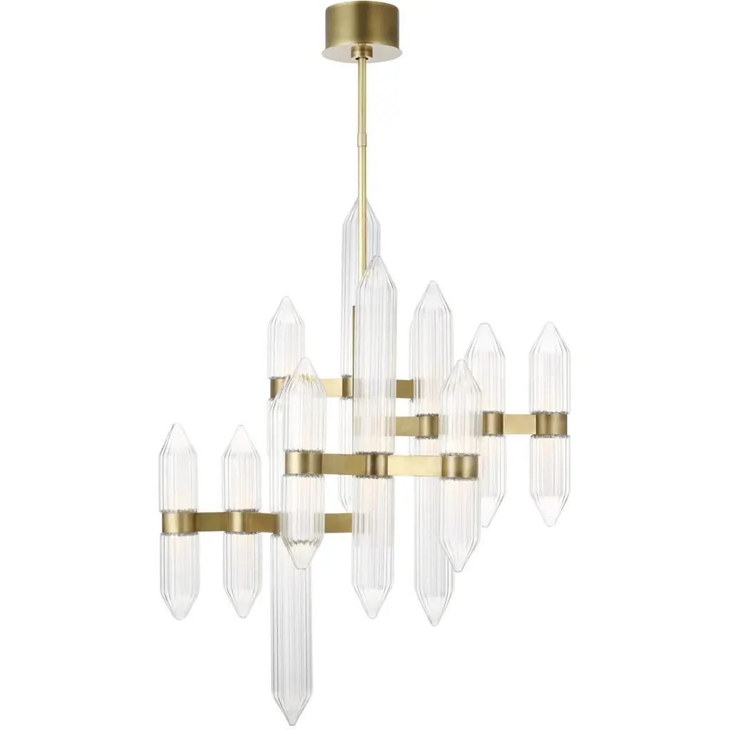 Perles Chandelier, Clear Crystal, Satin Gilded Finish, 1 Tier - Diam 1340 Mm