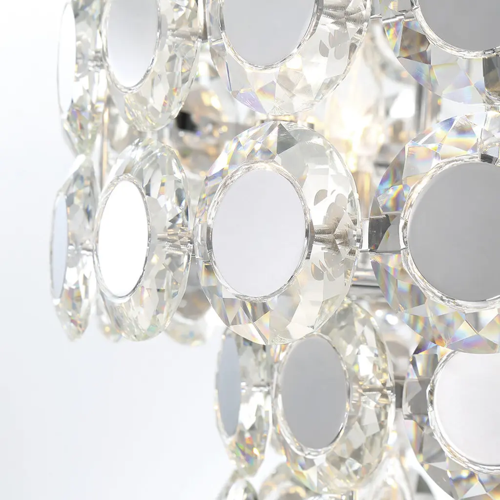 Our lavish Perrene collection is a true statement piece ordained with coveted crystals, both sides showcase bevelled texture that brings dramatic elegance. The mirrored chrome center helps reflect the light for an even more opulent display of light. Indulge with the Perrene collection today.