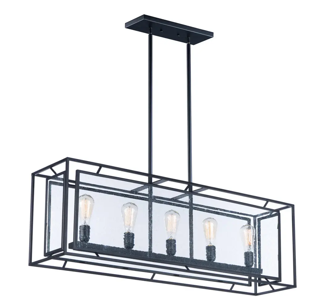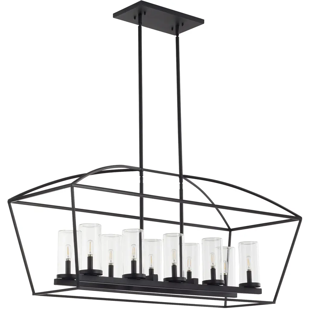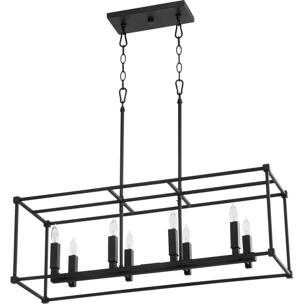 The Perryton eight light linear chandelier in midnight black supplies ample lighting for your daily needs, while adding a layer of today's style to your home's d?cor. Inspired by stately carriage lanterns, Perryton features an updated open frame with sleek square steel tubing