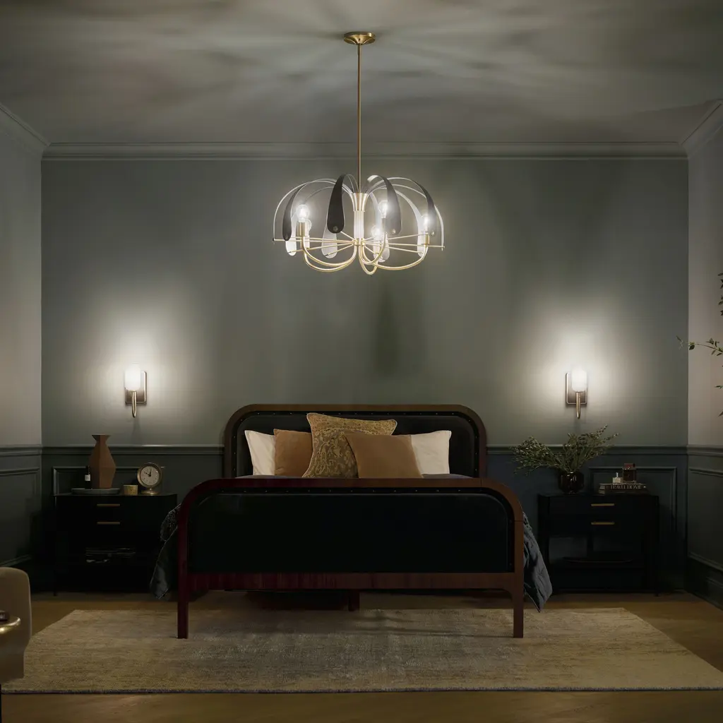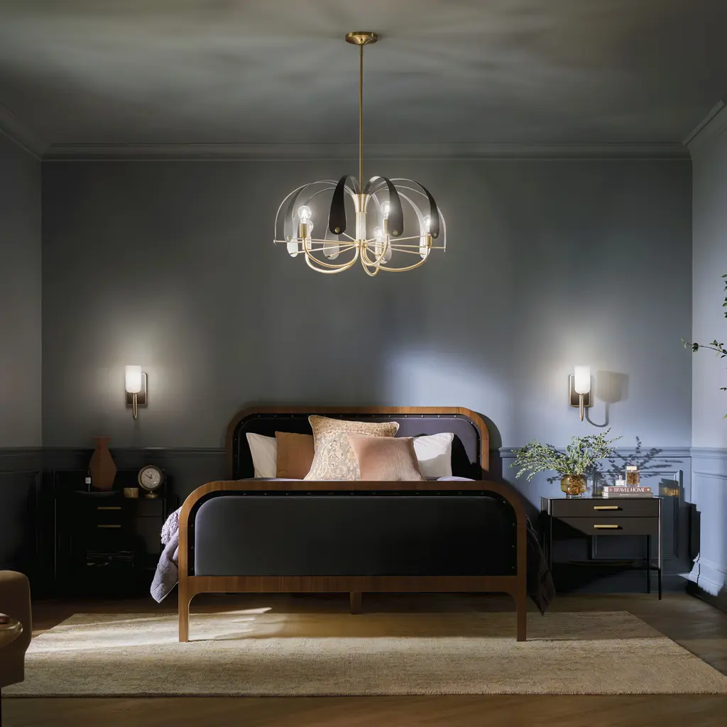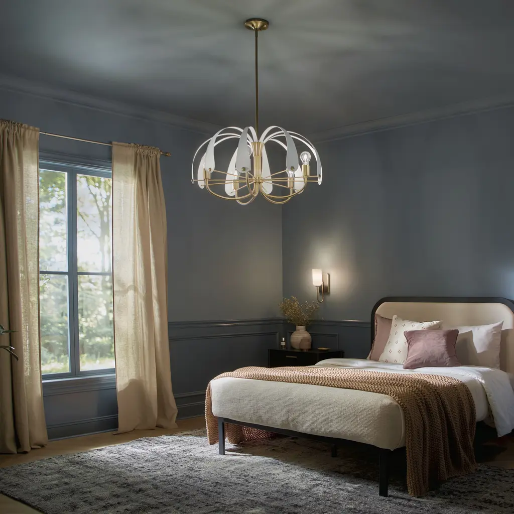 Petal 31 Inch 5 Light Chandelier in Champagne Bronze with Black or White