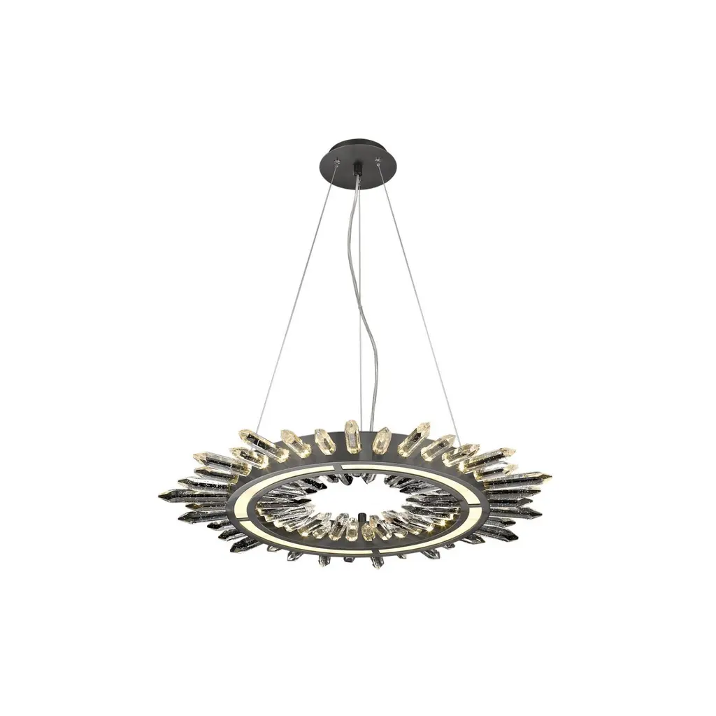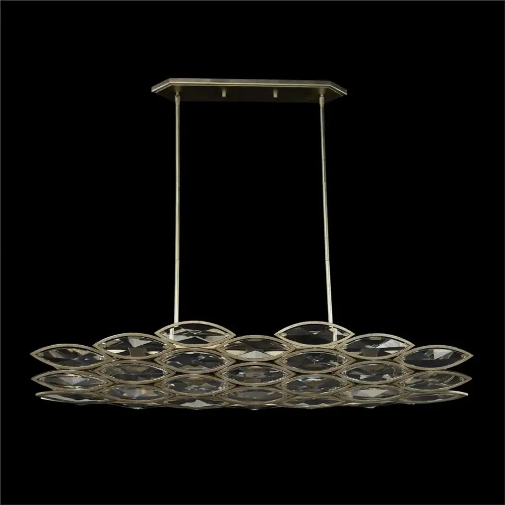The Petaline Horizontal Chandelier is a stylish, contemporary take on stunning natural motifs. Suspended from an ornate steel frame in a Champagne Silver finish, the piece evokes the look of elegant flower petals through gorgeous cuts of clear crystal. This sophisticated statement piece features six lights.