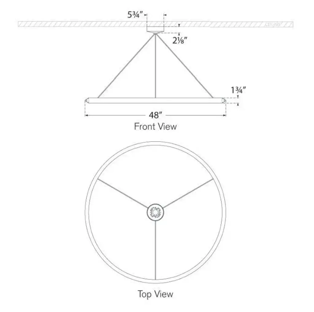 Encircle 48" Ring Chandelier in Polished Nickel Designer: Peter Bristol Fixture Height: 1.75" Canopy: 5.75" Round Mounting: 3 Cables Shade Detail: No Option Socket: Dedicated LED Wattage: 85w (6800lm) Safety Rating Location: DAMP Note: UL Only