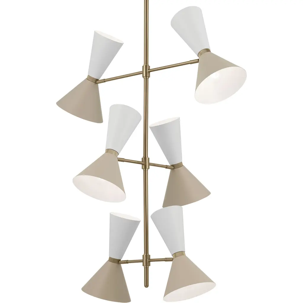 Phix 50 Inch 12 Light Foyer Chandelier in Champagne Bronze with Greige and White