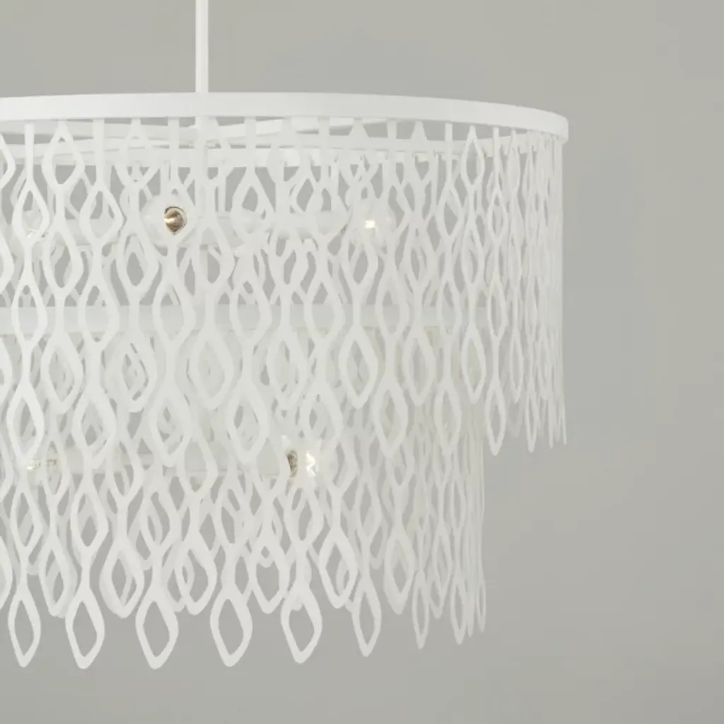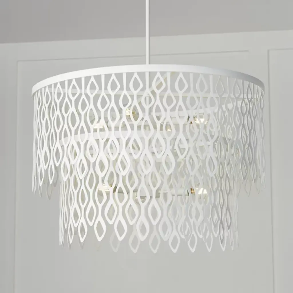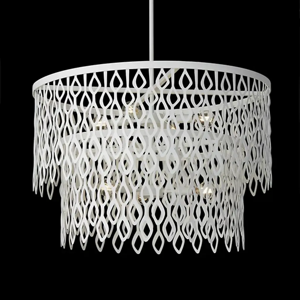 The Phoebe Chandelier from Capital Lighting resembles a waterfall of light, its two-tier design an absorbing dance of shadows and light. Laser-cut patterns adorn its metal frame, creating a lace-like effect that transforms your space into a theater of light. Its modern glamour invites wonder and admiration, making it a stunning sculptural centerpiece for grand foyers or sophisticated dining spaces.