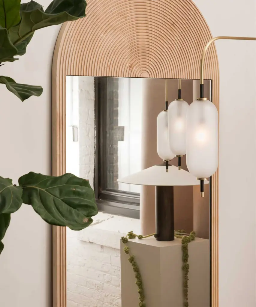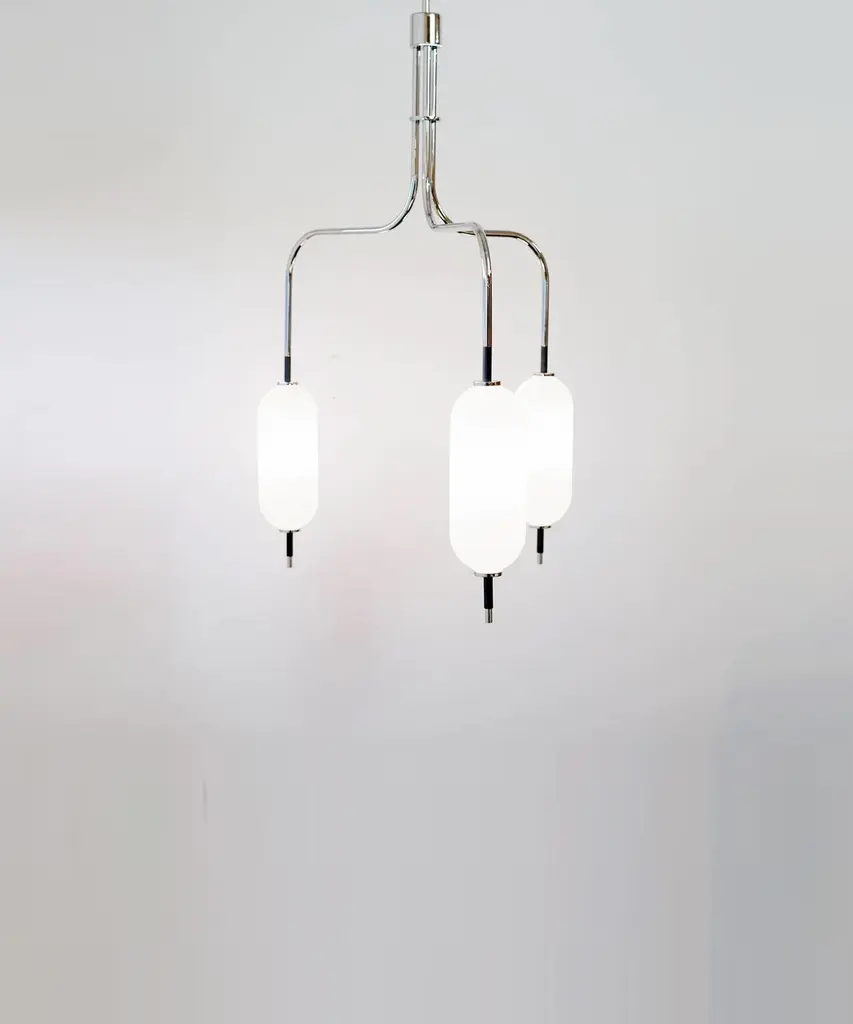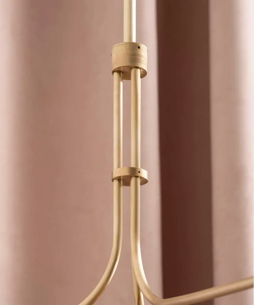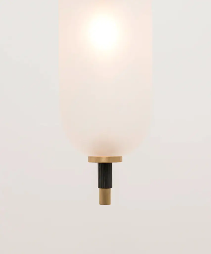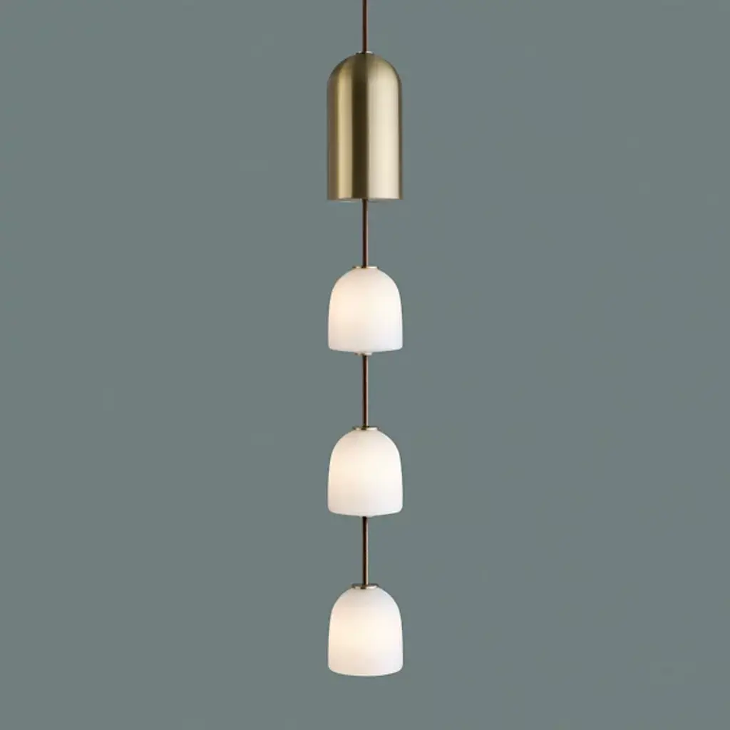 A jewel-inspired lighting series, composed of delicate metal stems and handblown, sandblasted glass orbs. The bulb inside the orb emits a diffused glow from the center of its core, for a warm, atmospheric setting. The collection is made-to-order and is available in a range of finish options. Please note, that the chandelier assumes a 25" rod length, however, it is easily customizable upon request (please email us at help@trnk-nyc.com with your specifications). Each piece is designed and hand-produced by Coil + Drift, a lauded New York's Catskill Mountains-based design studio known for its vividly three-dimensional and material-forward collections.