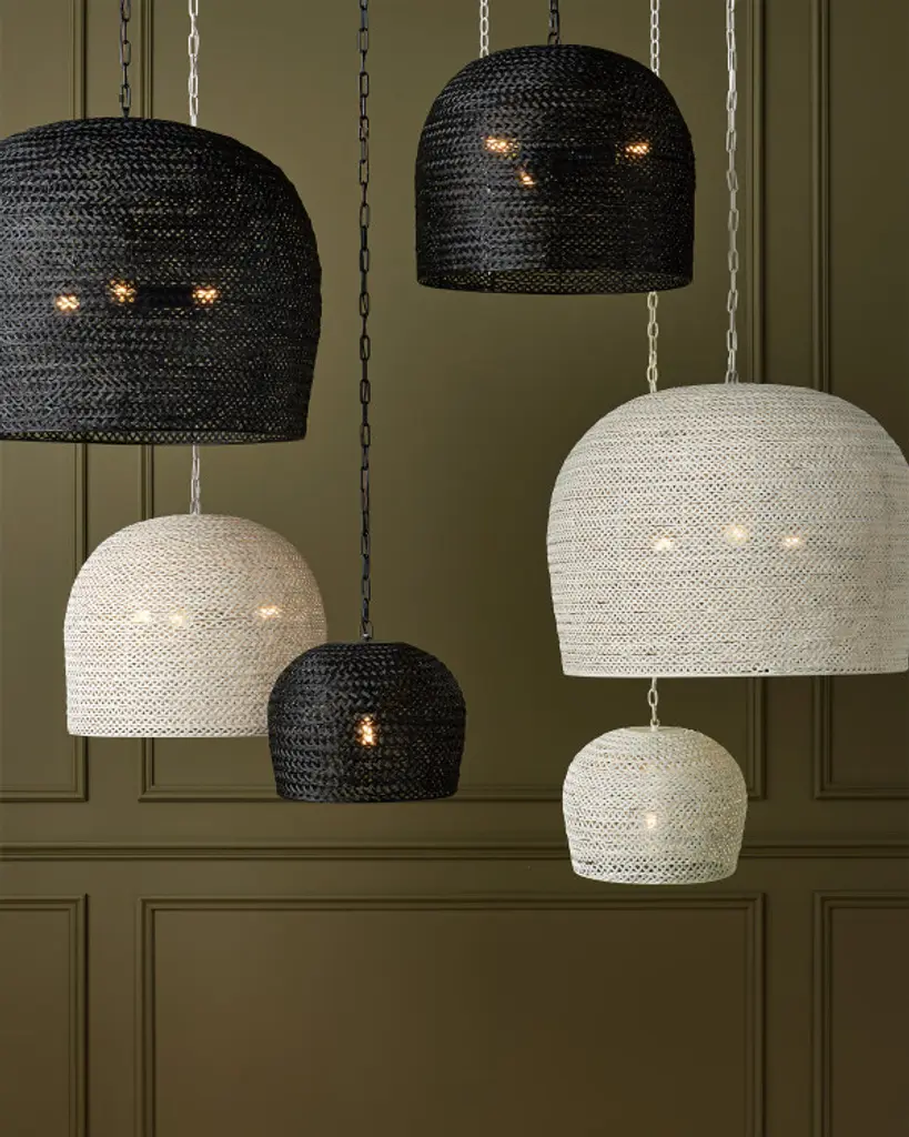The Piero Medium Chandelier may appear to be woven from a natural plant material but it is made of iron to exemplify the skills that our craftspeople bring to their work. When illuminated, textural patterns will enliven surrounding surfaces; when it is not, the flowing weave will continue to be a textural accent in a space. Adjustable from 27.75" to 94" with use of included chain/rod kit/cable.