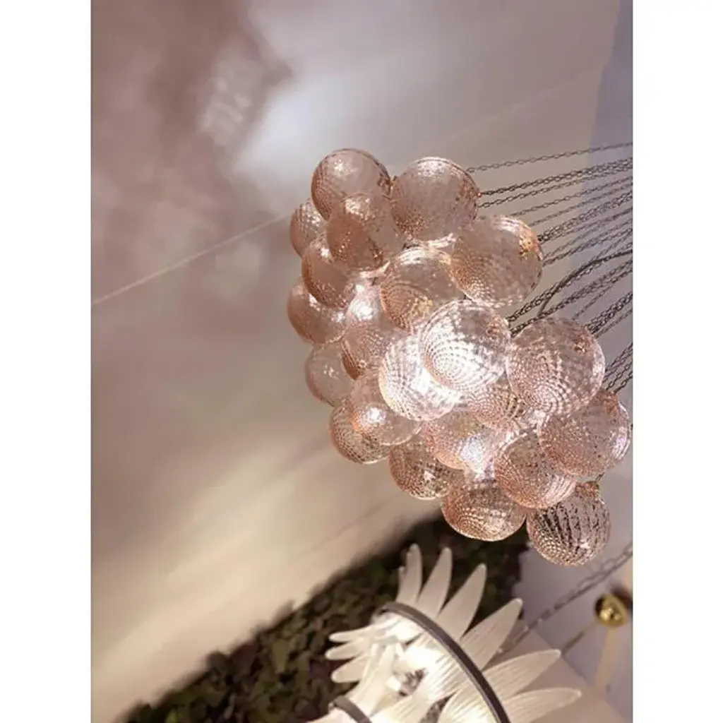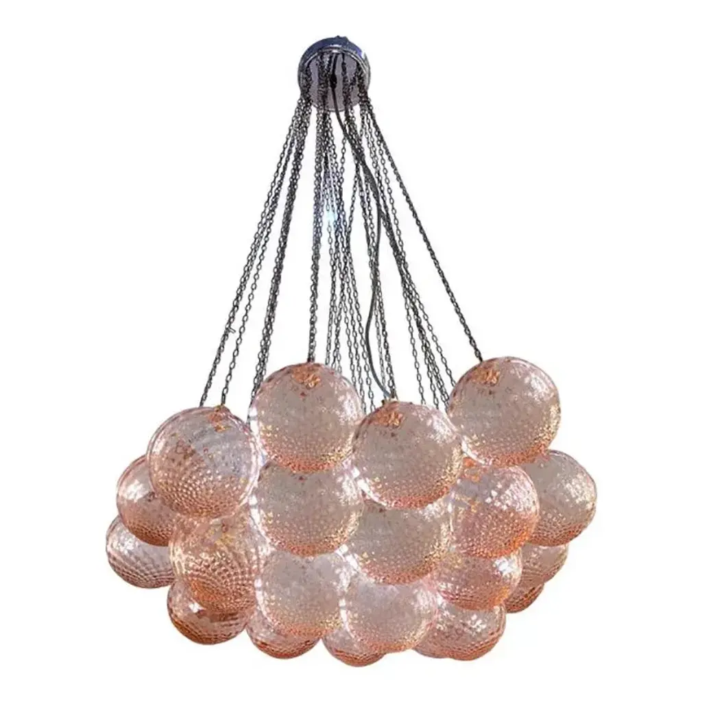 Pink Ballotton Murano Glass Spheres Chandeliers By Simoeng, Set Of 2