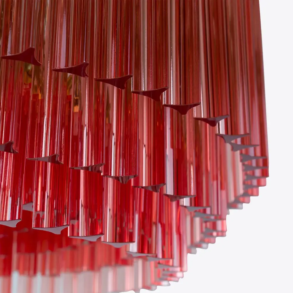 Layer upon layer of mid-century inspired triedri glass prisms make our Amaro chandeliers the perfect centre piece for a living, dining room or lobby. Up to 250V (Europe/UK Standard).