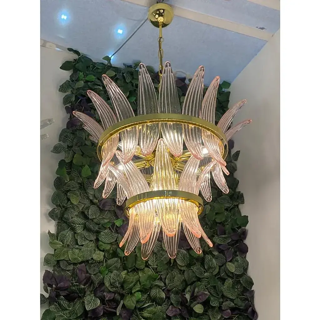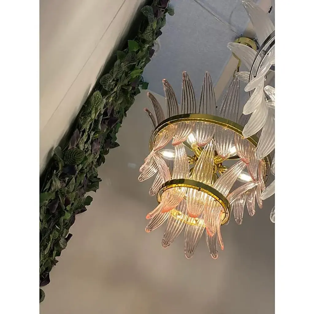 Pink Palmette Murano Glass Chandelier US Plug (up to 110V).