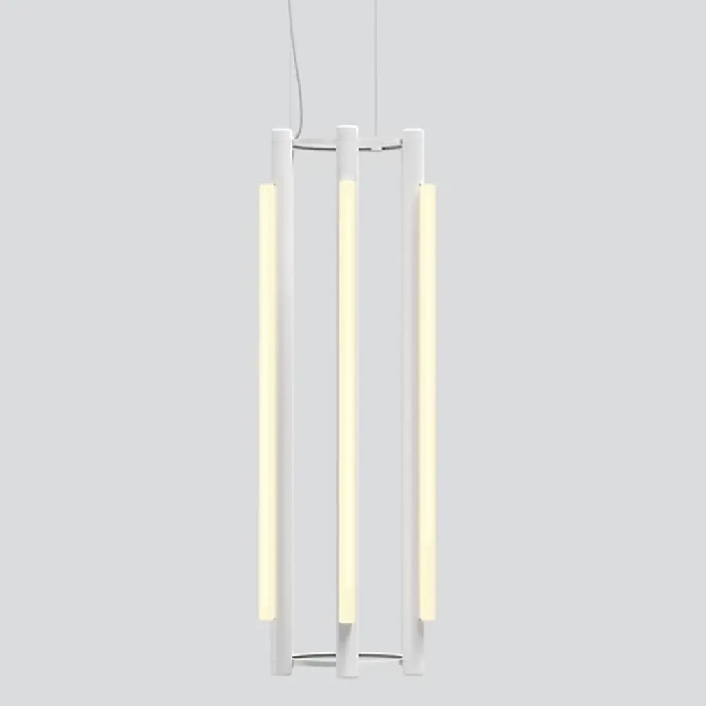 With a narrow, elongated form, Pipeline 4 configures 6 linear LED elements clinched by metal hoops. A-N-D cofounder and designer Caine Heintzman offers both horizontal or vertical takes on his cylindrical fixture, which is available in a range of color temperatures as well as multiple finish options for the aluminum framework.