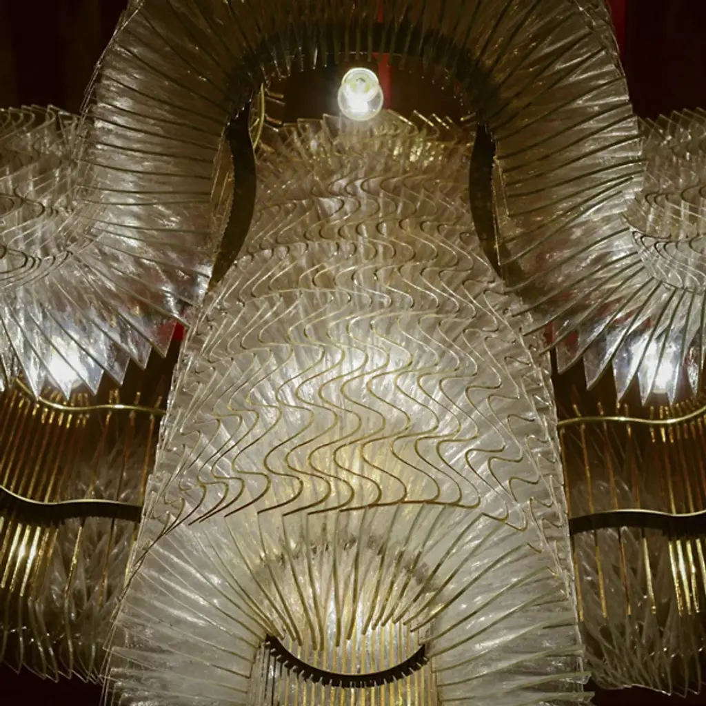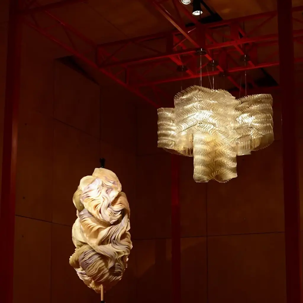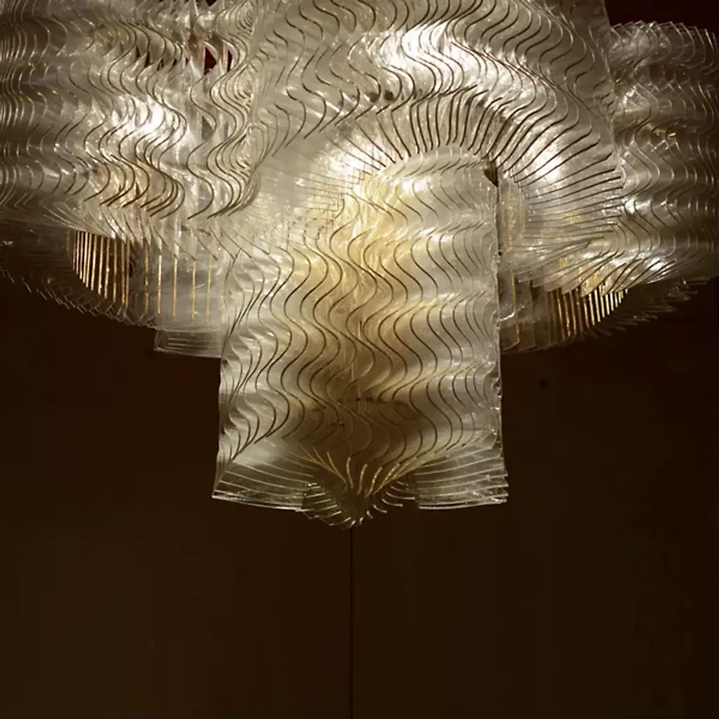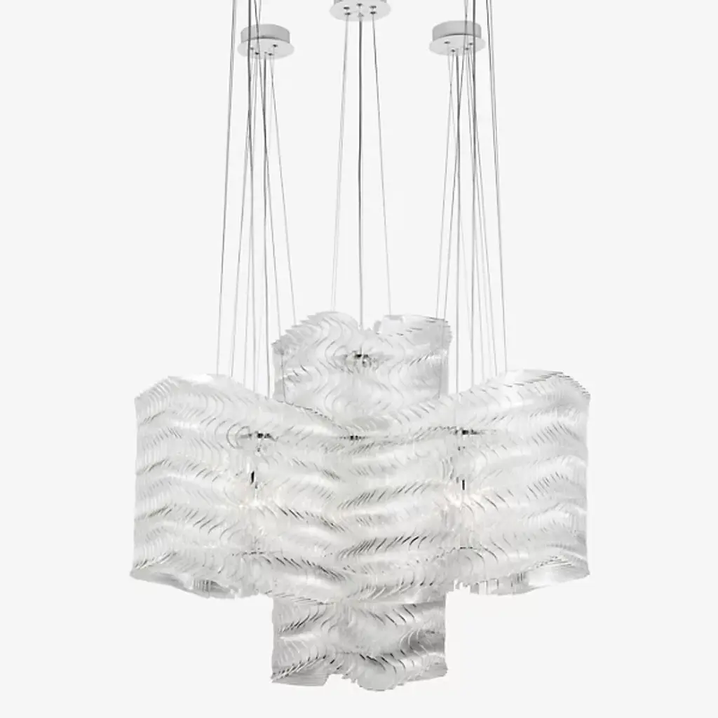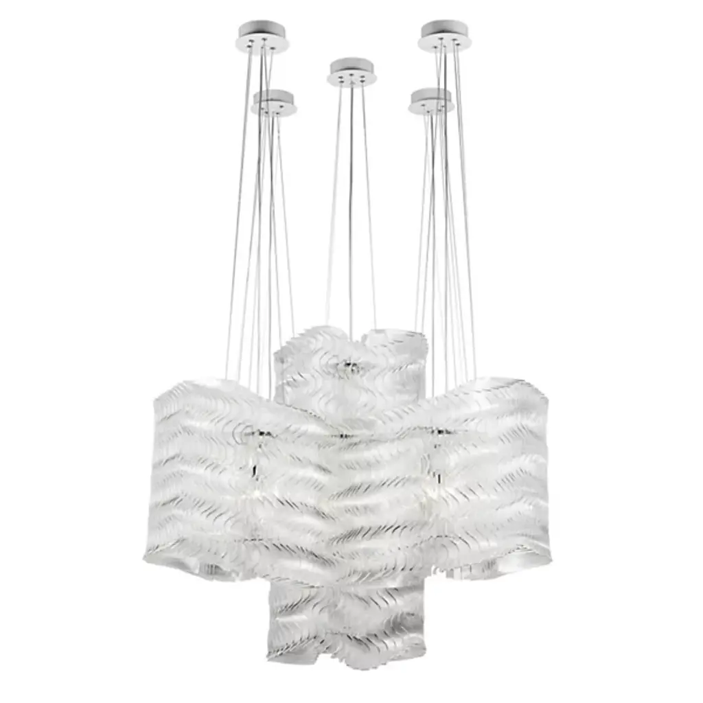 Soft and seductive, like the doubled fabric design of a piece of couture. The Plisse Large Chandelier from Lasvit is a mesmerizing, transforming display, giving off fashionable and sculptural vibes with waves of handmade glass. A renowned Parisian courtier, designer Maurizio Galante creates works that respect traditional craftsmanship. Here, casting glass calls back to folding fabric, thus achieving a layered quality. The tight curves of the sandwiched glass transform into dazzling highlights when turned on. The light follows the softness of the glass’s curves, radiating to deliver an alluring atmosphere. An ultra-fine suspension gives the piece a floating, cloud-like character.