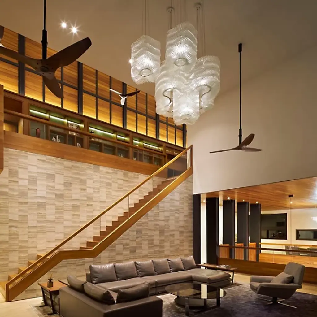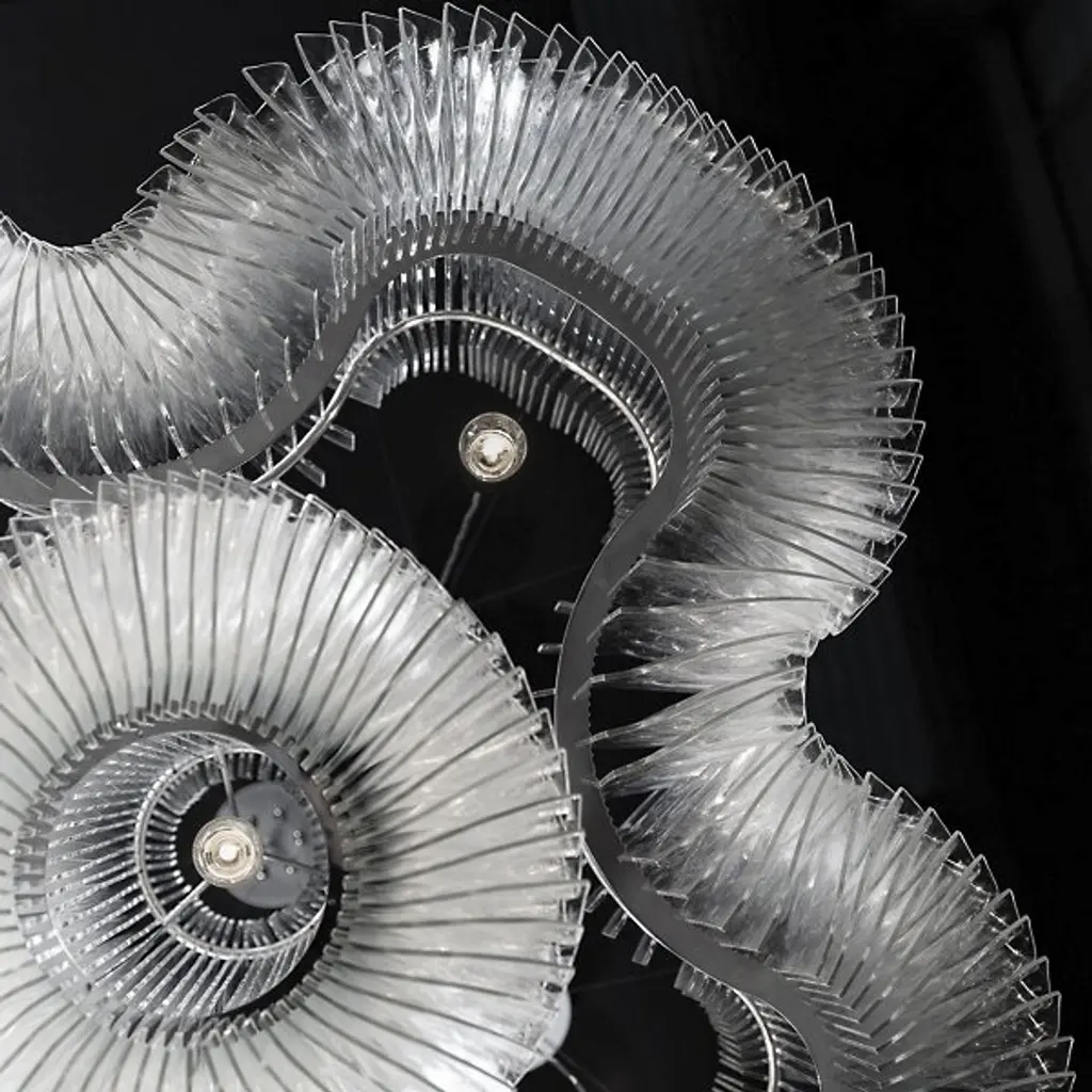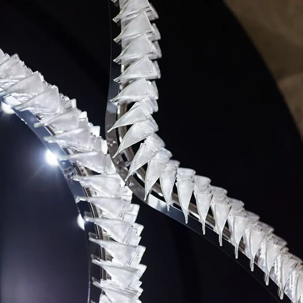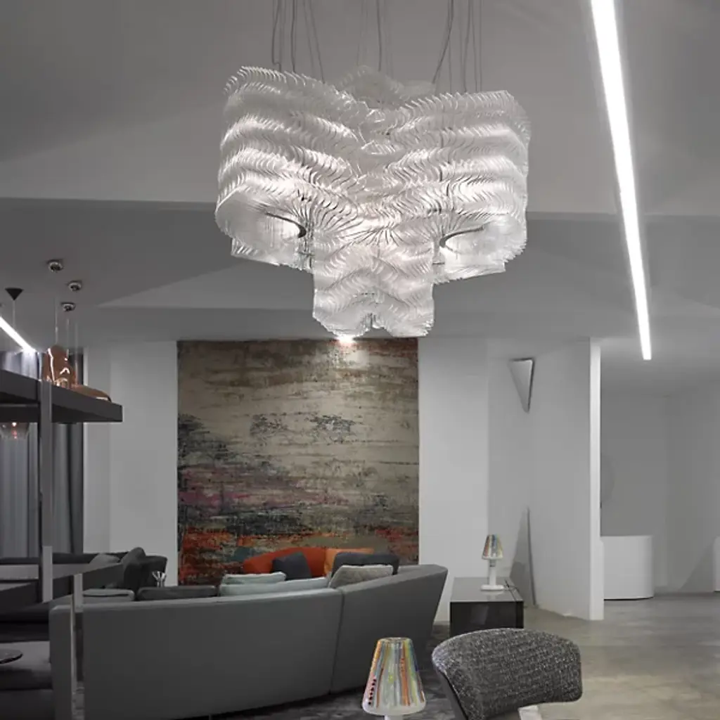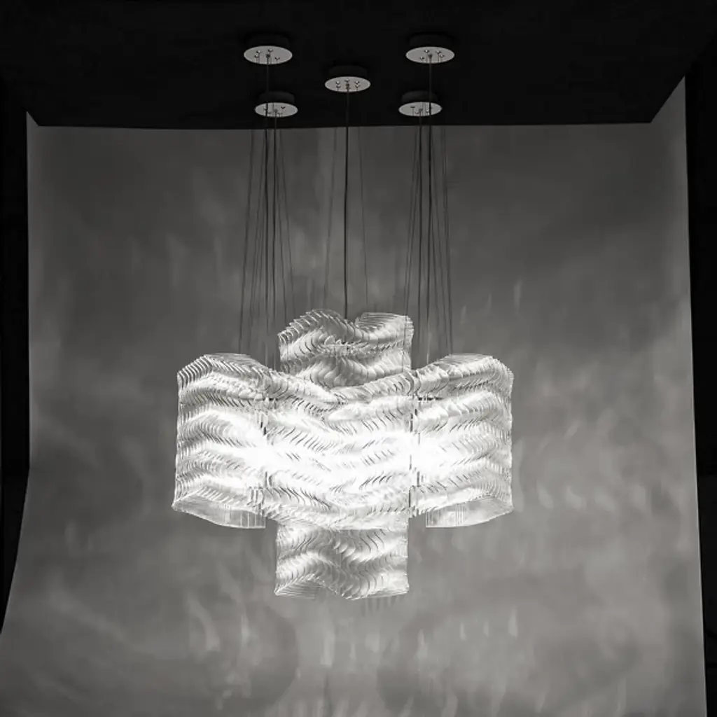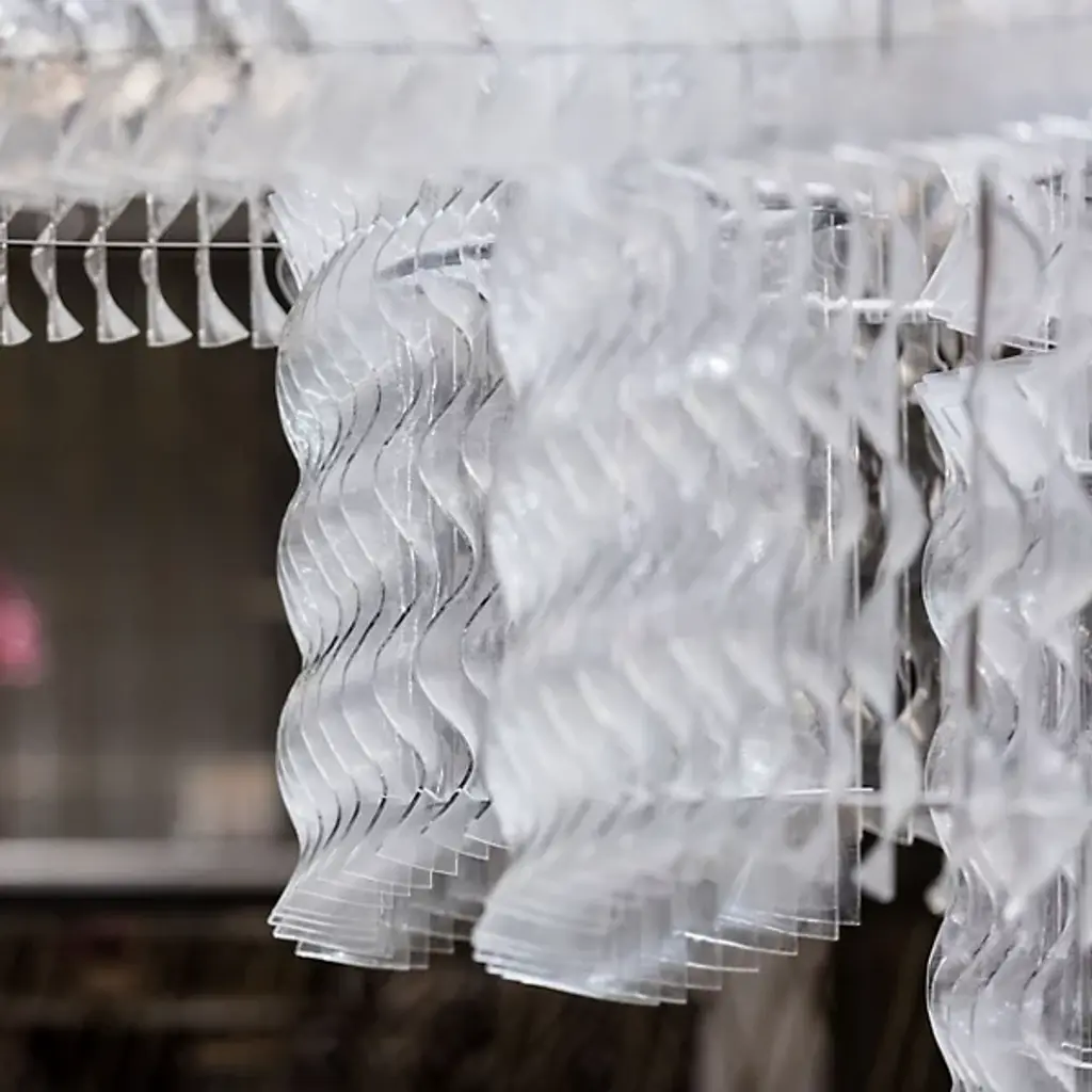 Soft and seductive, like the doubled fabric design of a piece of couture. The Plisse Large Chandelier from Lasvit is a mesmerizing, transforming display, giving off fashionable and sculptural vibes with waves of handmade glass. A renowned Parisian courtier, designer Maurizio Galante creates works that respect traditional craftsmanship. Here, casting glass calls back to folding fabric, thus achieving a layered quality. The tight curves of the sandwiched glass transform into dazzling highlights when turned on. The light follows the softness of the glass’s curves, radiating to deliver an alluring atmosphere. An ultra-fine suspension gives the piece a floating, cloud-like character.