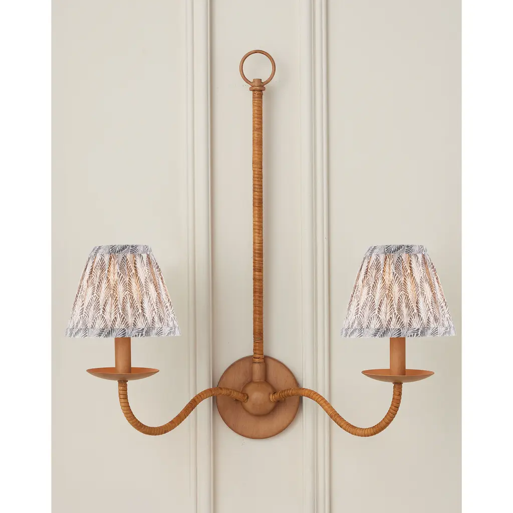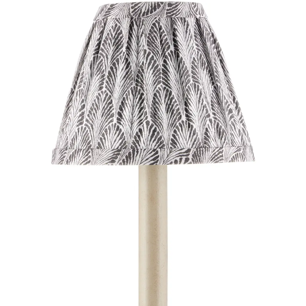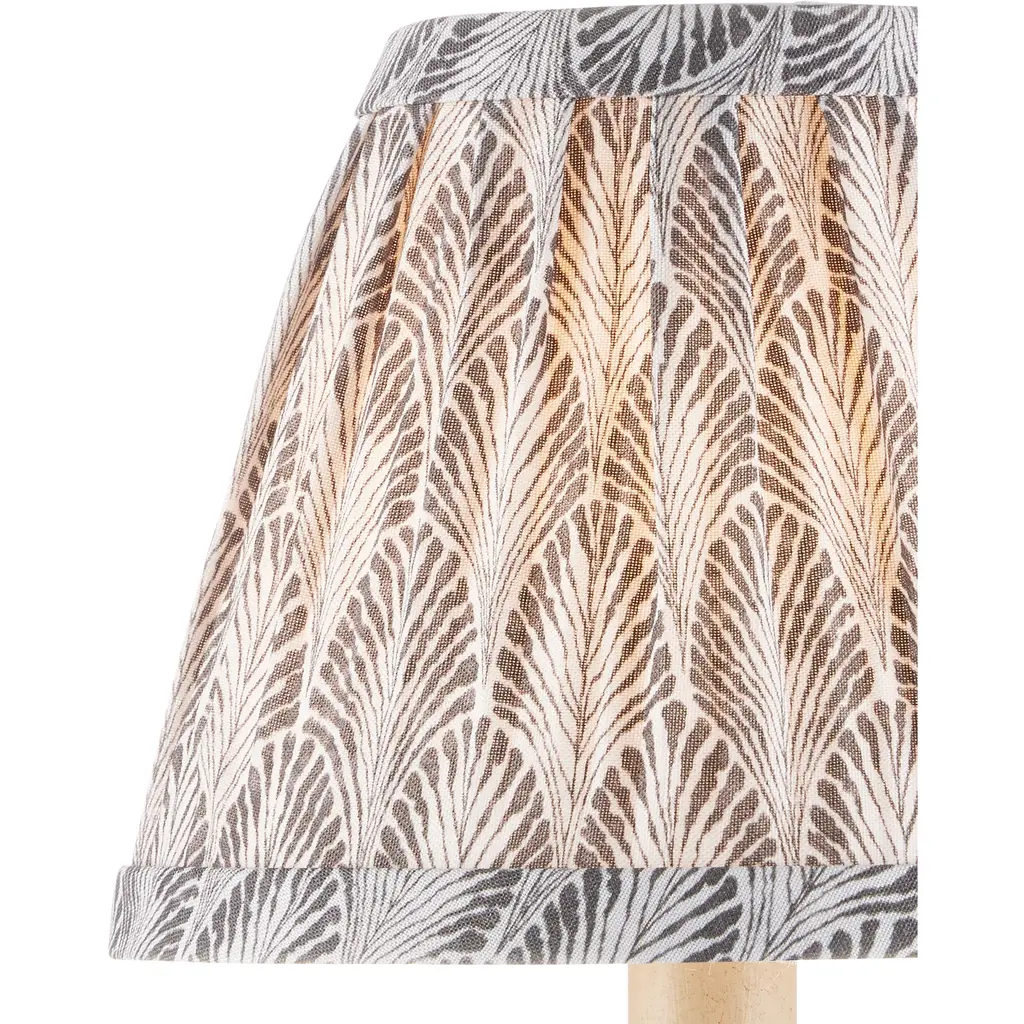 A fan-like gray pattern dresses this tapered chandelier shade from design partner Lacefield Designs.