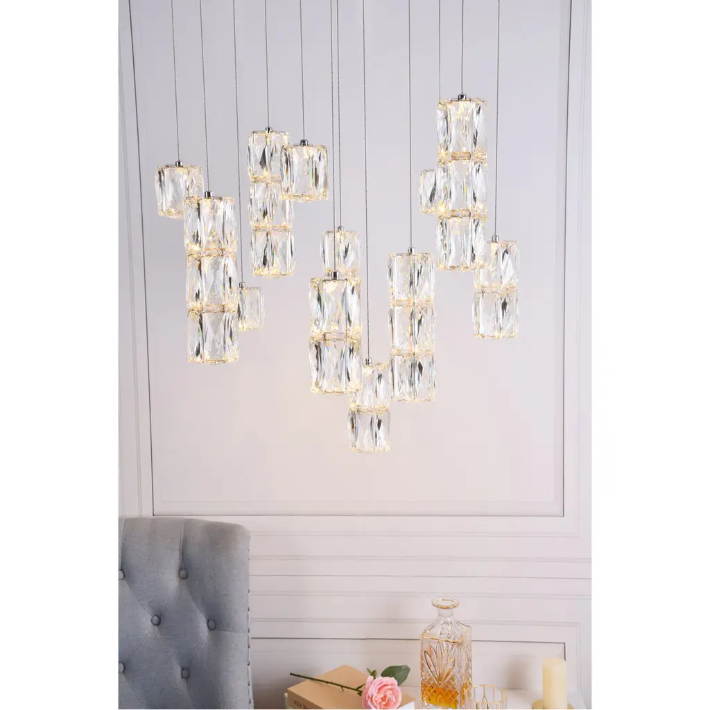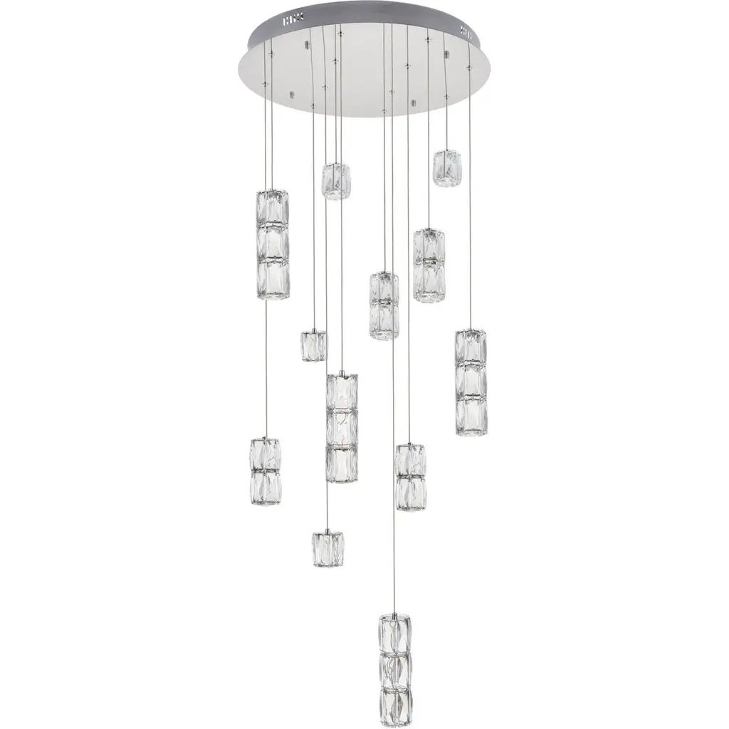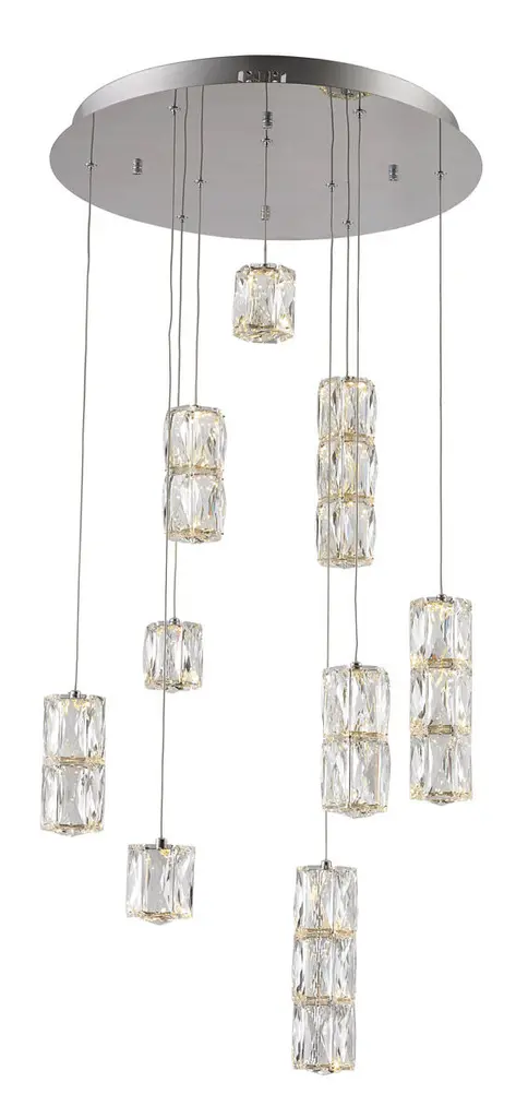 The Polaris collection is the epitome of “cool” in lighting, because each of the fixtures has rectangular, elegant-cut crystals that look like ice cubes, gracefully suspended from a stainless-steel base with a bright chrome finish. Designed for rooms with higher ceilings, these fixtures are definitely stylistic attention-getters.