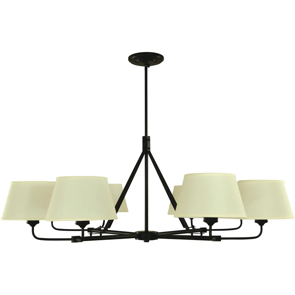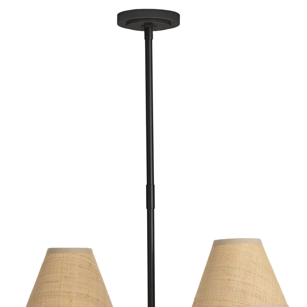 The Polly Chandelier embodies grace and versatility with its six shades, delicately crafted and sewn into a charming scalloped pattern. Its multi-tiered design, coupled with rotatable arms, offers flexibility in configuration, allowing for linear arrangements or coverage over a round dining table.