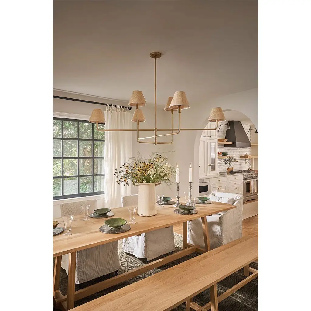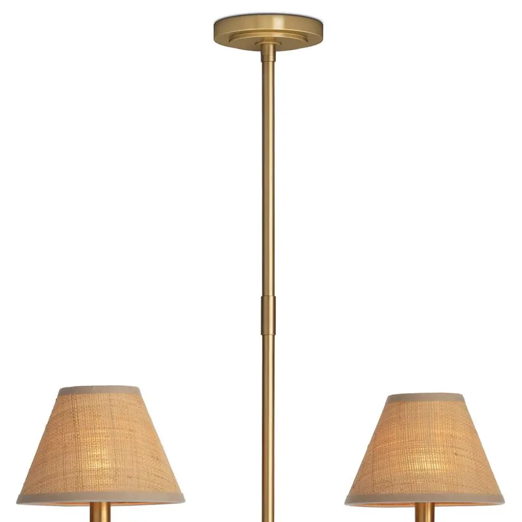 Polly Coastal Beach Brown Rattan Shade Natural Brass Chandelier