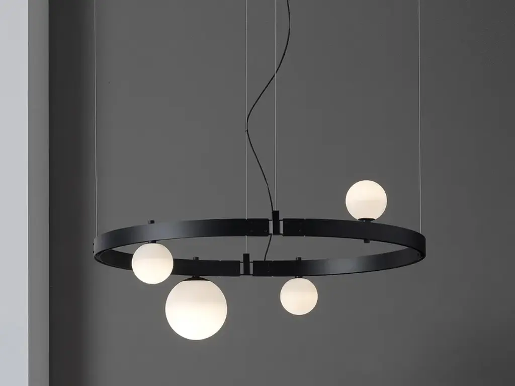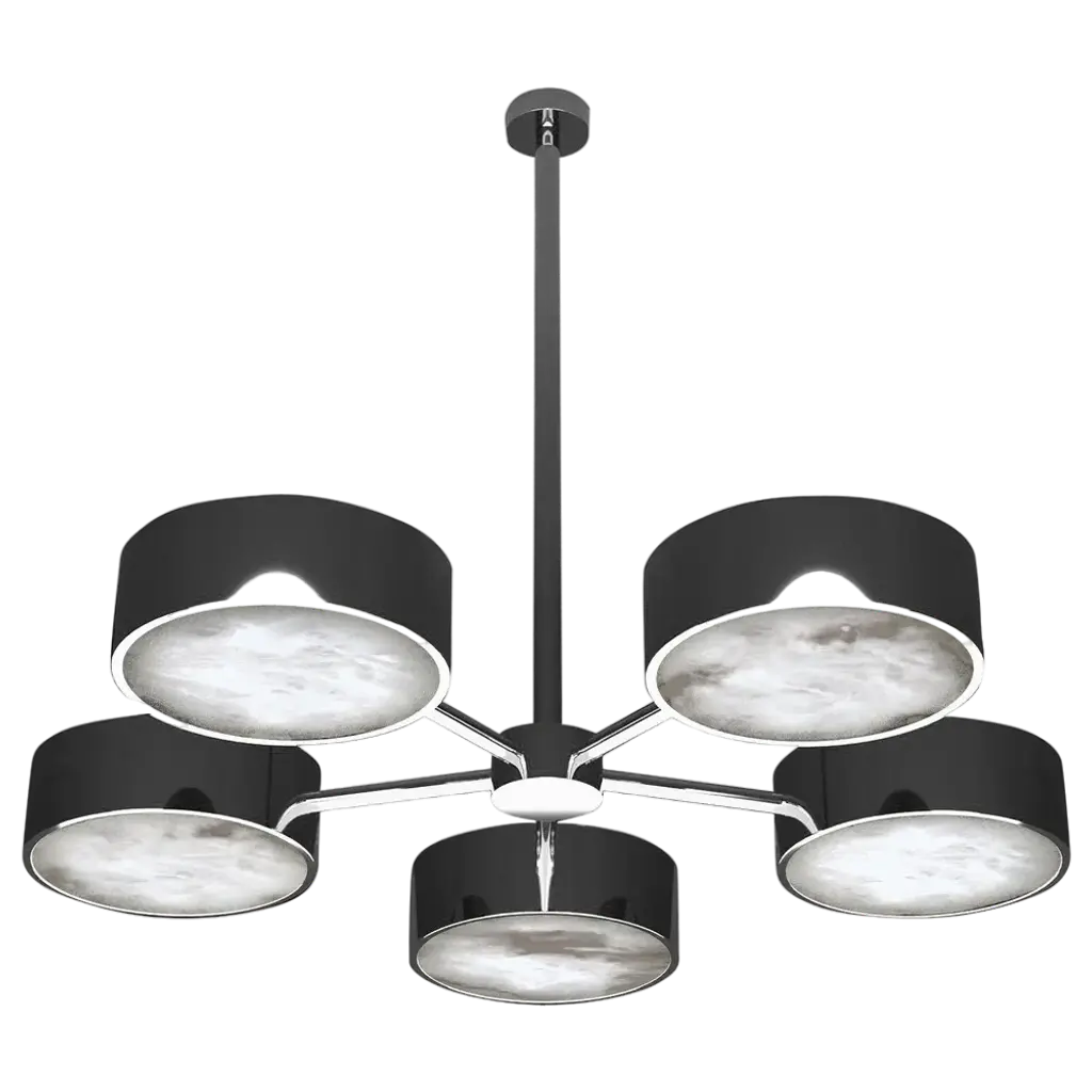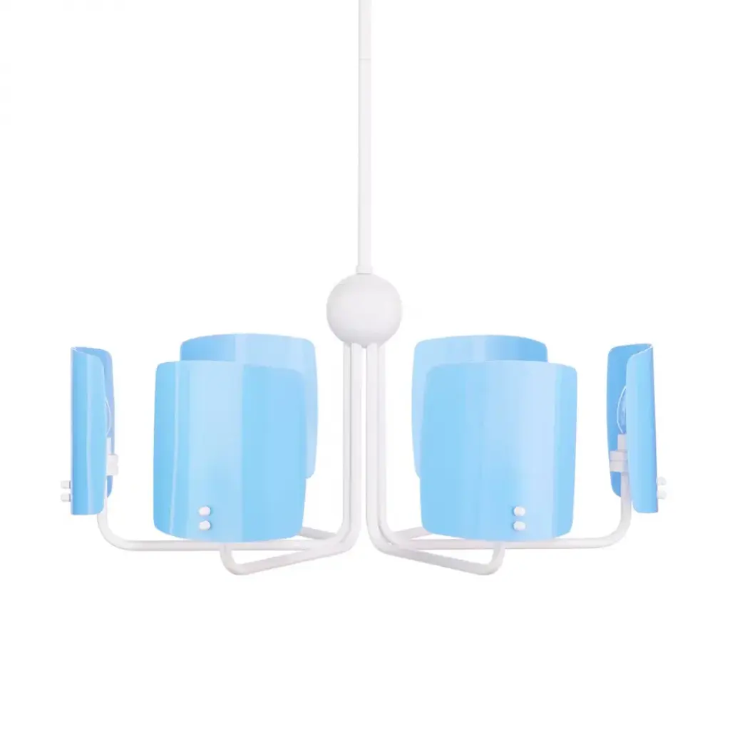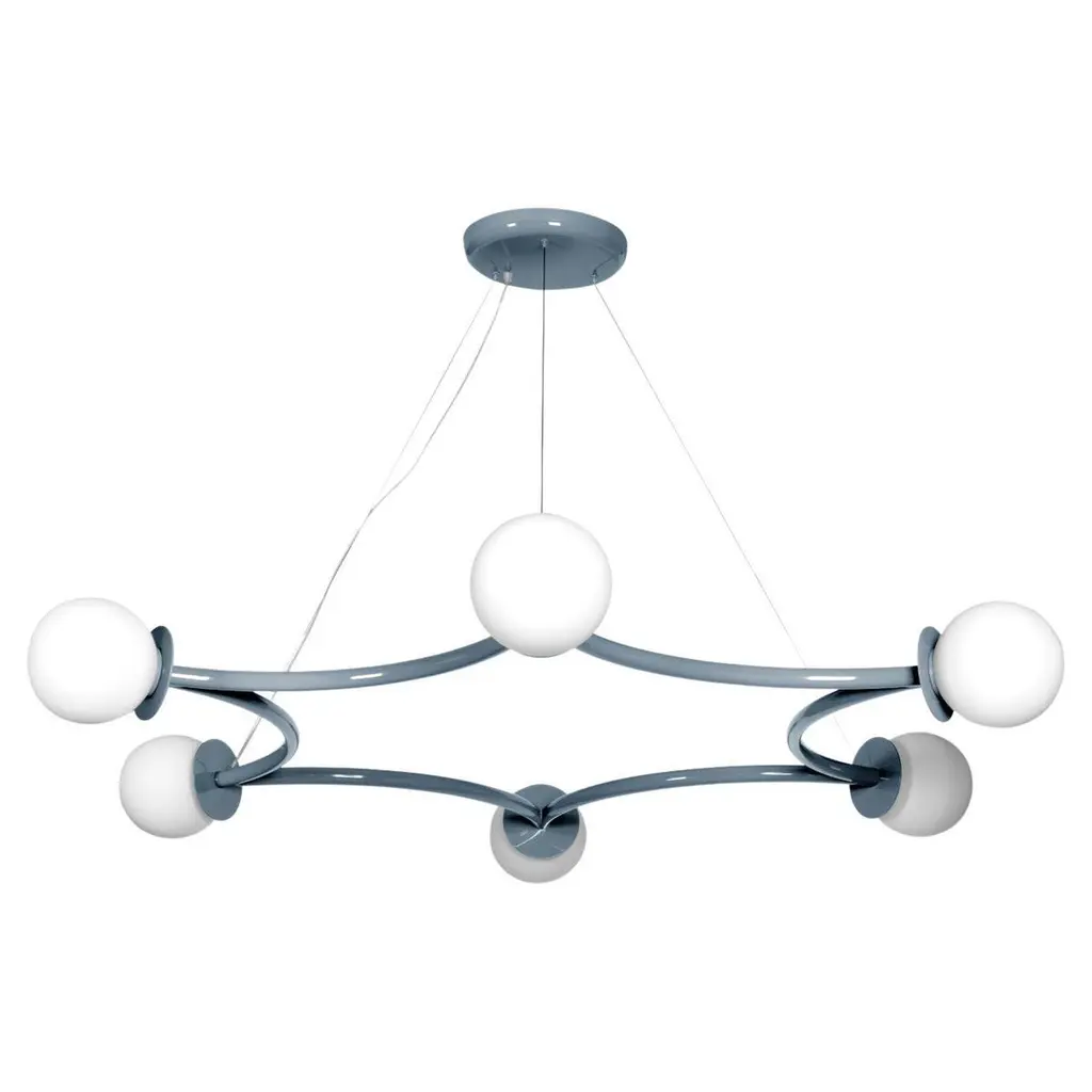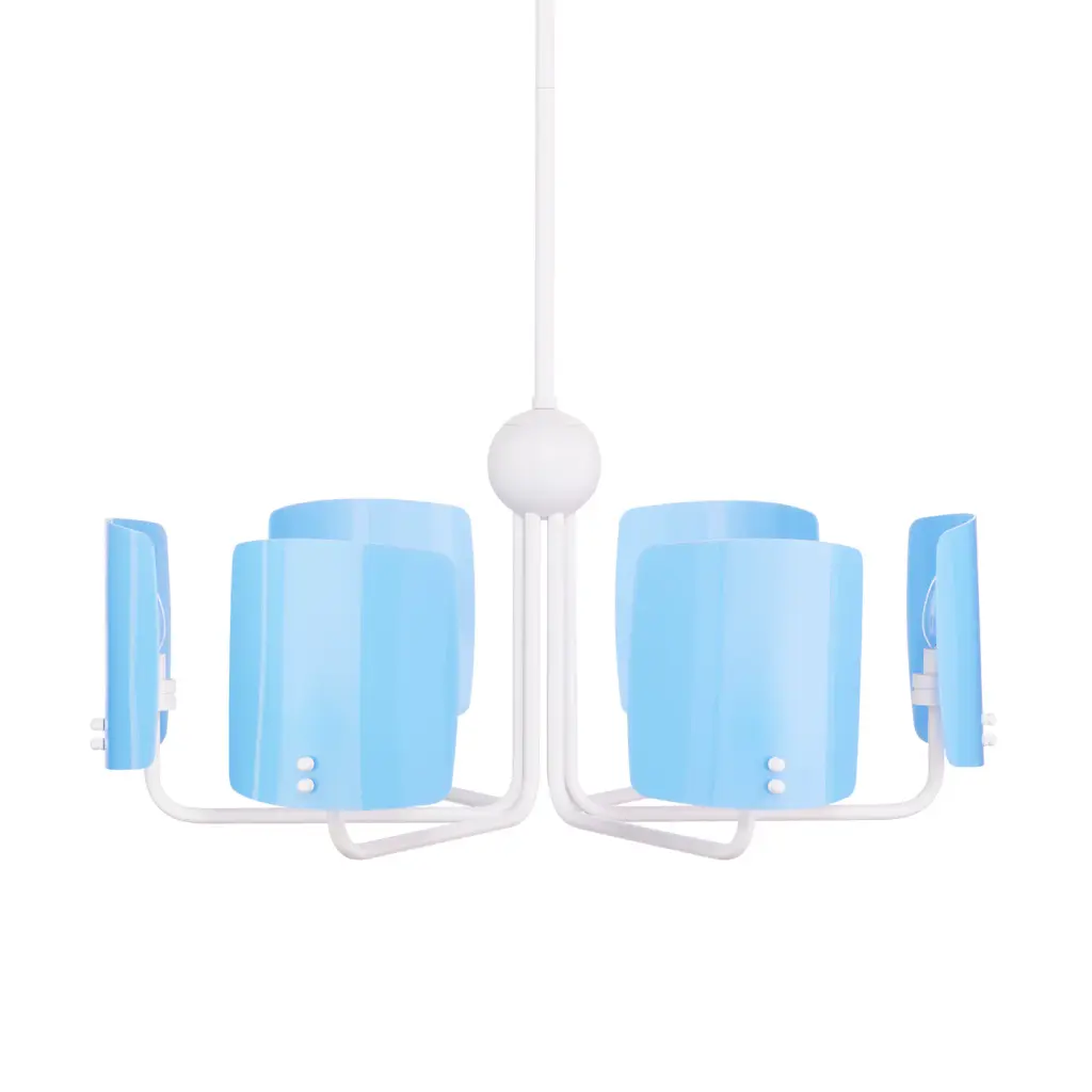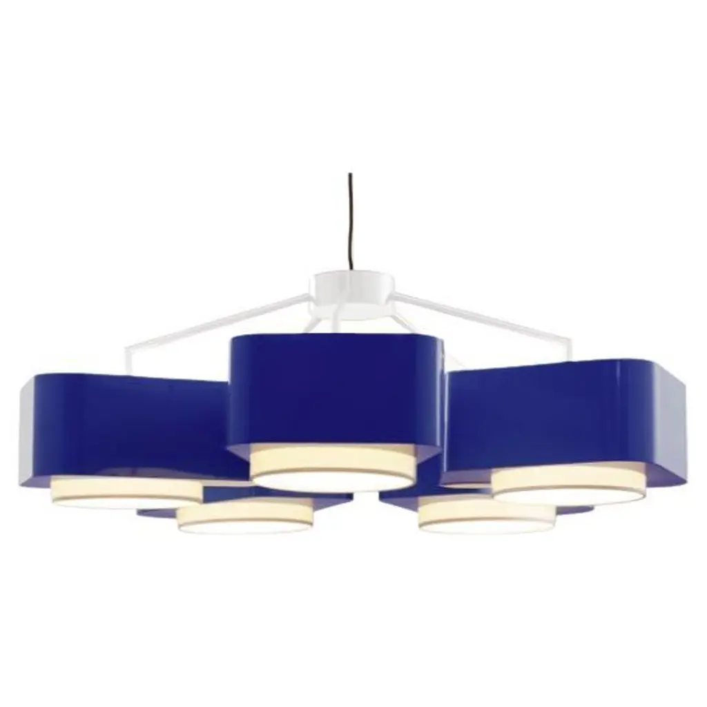 Mod Mood.Featuring a ring of groovy acrylic shades around a mod Italian framework, our Polly Six-Light Chandelier is a clean, elemental fixture for futuristic foyers and minimalist dining spaces. Go ultra-mod in white with blue acrylic shades, or signal 70s swank in honed brass with smoke acrylic shades.All lighting sales are final. Item #32325