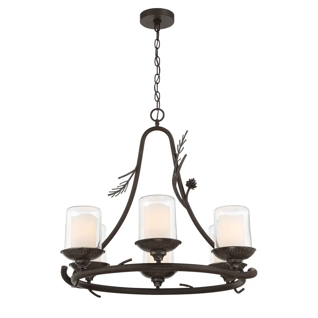 Ponderosa Ridge 6 Light 28 Inch Weathered Spruce/silver Highlights Chandelier Ceiling Light