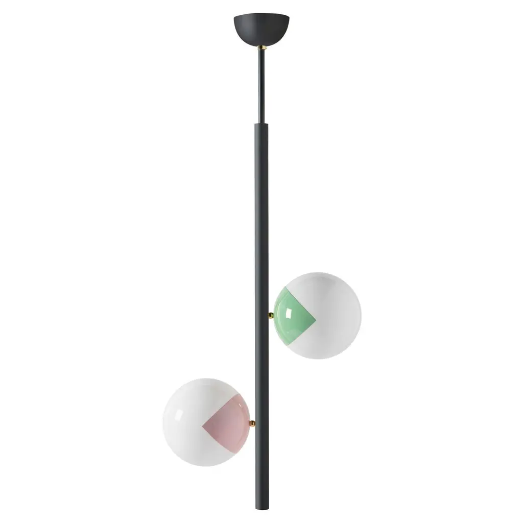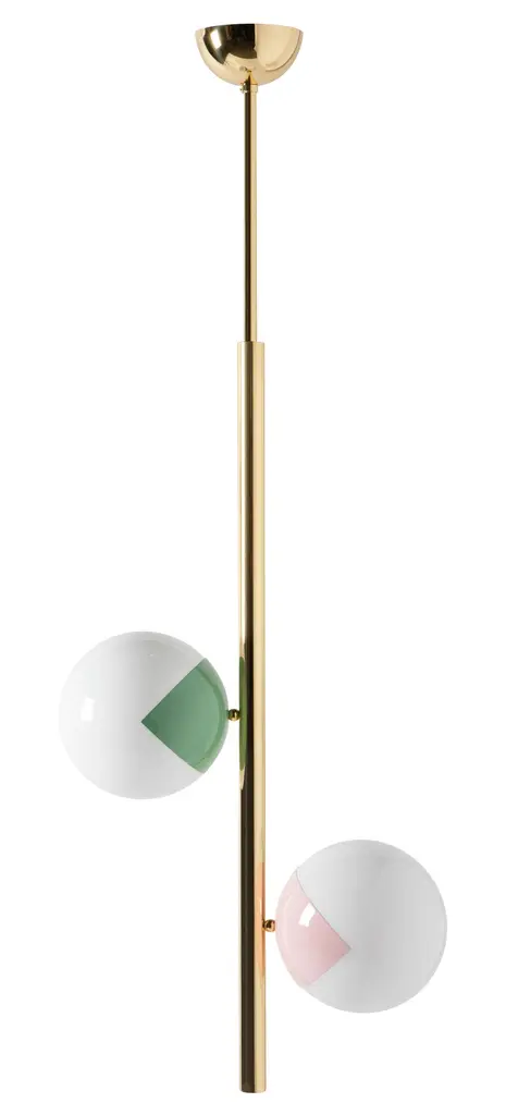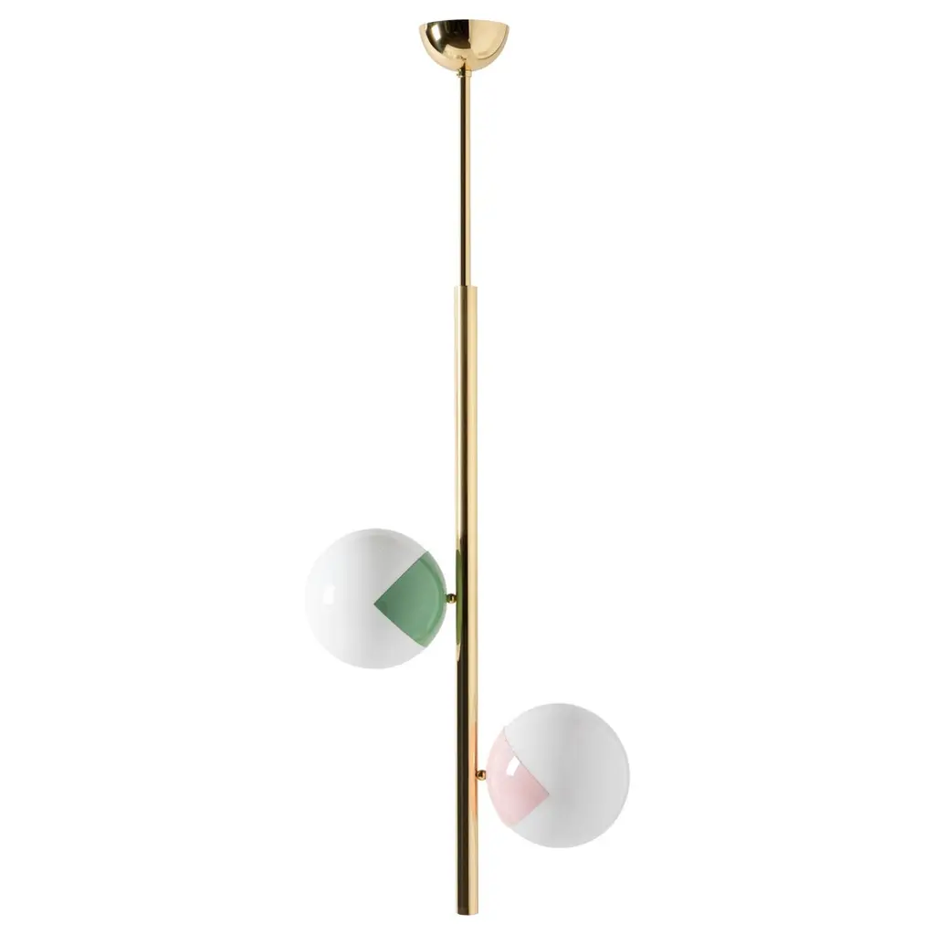 Pop-up chandelier by Magic Circus Editions.Dimensions: W 58 x H 135 cm diameter sphere 25 cmMaterials: Smooth brass and glossy mouth blown glassAvailable finishes: Smooth brass, glossy mouth blown glassbrass, nickel, matte black tube and brass, matte black tube and nickelRethinking, reimagining, redesigning familiar objects that we look at every day without ever really seeing them and using light to tell stories, this how Marie-Lise Féry sees her work. Offering a new take on our urban heritage, changing our perspective through her work on scale and usage. Since 2015, Magic Circus Éditions has been setting the world of lighting ablaze, creating airy, playful and magical designs that merge retro with sleek and contemporary. A free-spirited antiquarian, founder Marie-Lise Féry draws inspiration from the world of cabarets and the magic of the circus to give shape to imaginative, fun and playful collections. The air of magic she breathes into her work reveals a wealth of interpretations and widens possibilities for creative interiors. The combination of traditional know-how — outstanding craftsmanship — and her imaginative take on historical, everyday objects lends an unexpected and charming quality to her creations.Féry’s lights are designed just like magic lanterns — precursor to modern-day cinema —, inspiring wonder through oversized, seemingly weightless compositions and understated references.Each collection has its own inspiration: the first models of street lighting for Collection 01; the happy memories of funfairs, sweets and balloons for her latest collection Balloon; the Far East for Collection 02; and the colourful, carefree spirit of the 1970s for Pop-Up, released in 2019. Magic Circus Éditions draws on airy designs, dream-like inspirations, colours and fun to create a sense of enchantment.Magic Circus Éditions founder Marie-Lise Féry was born in Paris. After studyingart business, she moved to New York to start her career. Fascinated by the city’s architecture, she found an endless source of inspiration in the Big Apple’s monumental decors. Returning to France to settle down in Lyon, she opened an antiques gallery named Un Château en Espagne, and started telling her own stories through objects she gleaned on markets all around the country. A way for her to perpetuate her mother’s motto: “Objects with a soul will always belong”. Since 2015, the year she established Magic Circus Éditions, she has moved on to lighting as a new medium for telling her stories, bringing the magic of the show into home interiors. With her love for the circus, turn-of-the-century cabarets and music halls, Marie-Lise Féry’s love of unusual objects has remained strong, but now prefers to focus her attention on pieces she has imagined herself. With a fun and light-spirited approach, she creates a bold visual effect that elicits instant attraction. She collaborates with some of Europe’s greatest artisans, from Prague and Murano to Clermont-Ferrand, working for instance with a Czech company specialising in sculpting glass using a diamond-blade saw, or an auto body shop renowned for their work with lacquers. The refinement of shapes and finishes, bespoke designs and technical excellence all contribute to creating pieces that inspire surprise and wonderment. In the manner of Wes Anderson in Grand Budapest Hotel, blending together elegance, humour and unexpected details, her designs never fail to surprise. Attentive to the effect of her designs both in daylight and at night, Marie-Lise Féry takes us on a journey through space (from outside to inside) and time (from yesterday to today).