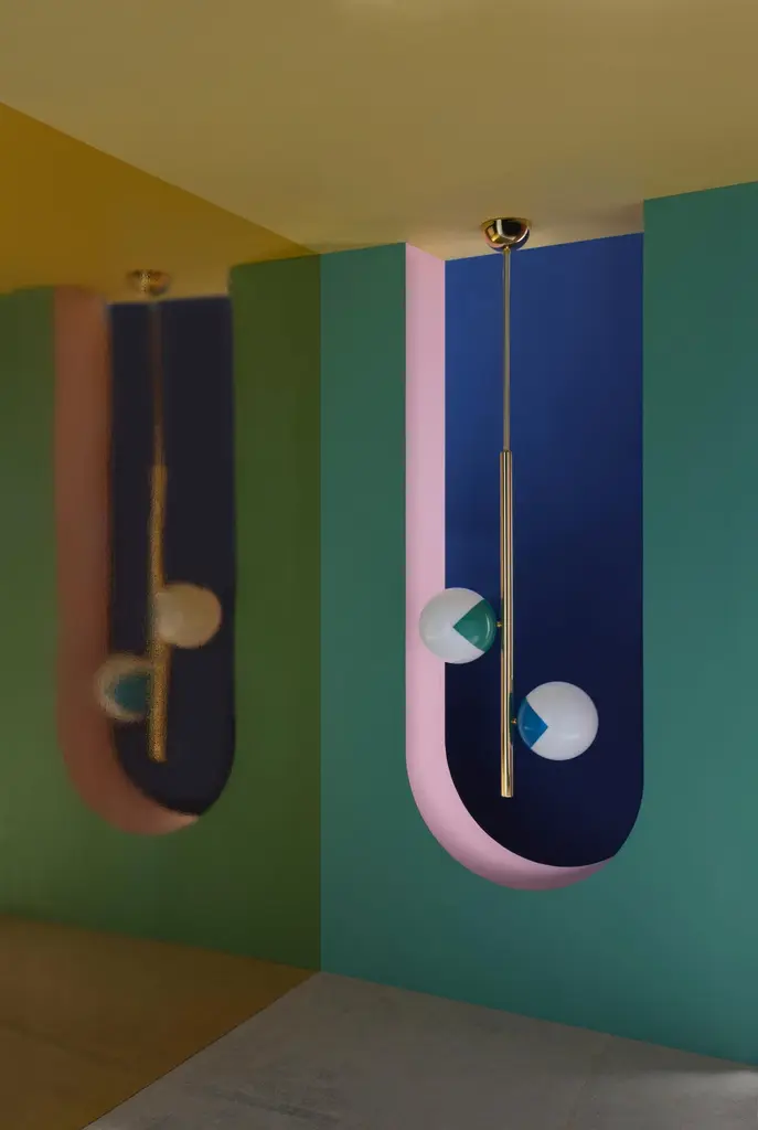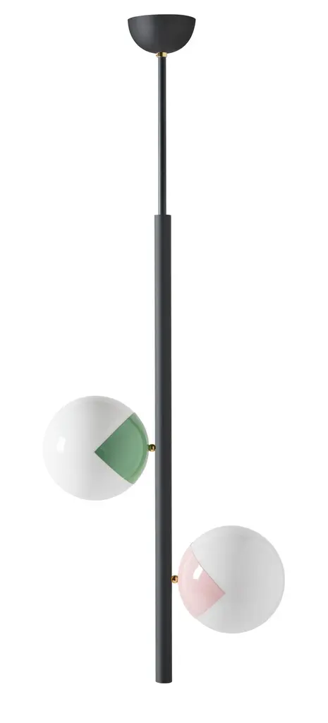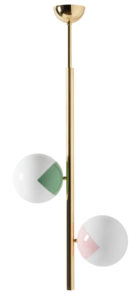 Pop-up chandelier by Magic Circus Editions.Dimensions: W 58 x H 135 cm Diameter sphere 25 cmMaterials: Smooth brass and glossy mouth blown glassAvailable finishes: Brass, nickel, matte black tube and brass, matte black tube and nickelRethinking, reimagining, redesigning familiar objects that we look at every day without ever really seeing them and using light to tell stories, this how Marie-Lise Féry sees her work. Offering a new take on our urban heritage, changing our perspective through her work on scale and usage. Since 2015, Magic Circus Éditions has been setting the world of lighting ablaze, creating airy, playful and magical designs that merge retro with sleek and contemporary. A free-spirited antiquarian, founder Marie-Lise Féry draws inspiration from the world of cabarets and the magic of the circus to give shape to imaginative, fun and playful collections. The air of magic she breathes into her work reveals a wealth of interpretations and widens possibilities for creative interiors. The combination of traditional know-how — outstanding craftsmanship — and her imaginative take on historical, everyday objects lends an unexpected and charming quality to her creations.Féry’s lights are designed just like magic lanterns — precursor to modern-day cinema —, inspiring wonder through oversized, seemingly weightless compositions and understated references.Each collection has its own inspiration: the first models of street lighting for Collection 01; the happy memories of funfairs, sweets and balloons for her latest collection Balloon; the Far East for Collection 02; and the colorful, carefree spirit of the 1970s for Pop-Up, released in 2019. Magic Circus Éditions draws on airy designs, dream-like inspirations, colors and fun to create a sense of enchantment.Magic Circus Éditions founder Marie-Lise Féry was born in Paris. After studyingart business, she moved to New York to start her career. Fascinated by the city’s architecture, she found an endless source of inspiration in the Big Apple’s monumental decors. Returning to France to settle down in Lyon, she opened an antiques gallery named Un Château en Espagne, and started telling her own stories through objects she gleaned on markets all around the country. A way for her to perpetuate her mother’s motto: “Objects with a soul will always belong”. Since 2015, the year she established Magic Circus Éditions, she has moved on to lighting as a new medium for telling her stories, bringing the magic of the show into home interiors. With her love for the circus, turn of the century cabarets and music halls, Marie-Lise Féry’s love of unusual objects has remained strong, but now prefers to focus her attention on pieces she has imagined herself. With a fun and light-spirited approach, she creates a bold visual effect that elicits instant attraction. She collaborates with some of Europe’s greatest artisans, from Prague and Murano to Clermont-Ferrand, working for instance with a Czech company specializing in sculpting glass using a diamond-blade saw, or an auto body shop renowned for their work with lacquers. The refinement of shapes and finishes, bespoke designs and technical excellence all contribute to creating pieces that inspire surprise and wonderment. In the manner of Wes Anderson in Grand Budapest Hotel, blending together elegance, humour and unexpected details, her designs never fail to surprise. Attentive to the effect of her designs both in daylight and at night, Marie-Lise Féry takes us on a journey through space (from outside to inside) and time (from yesterday to today).