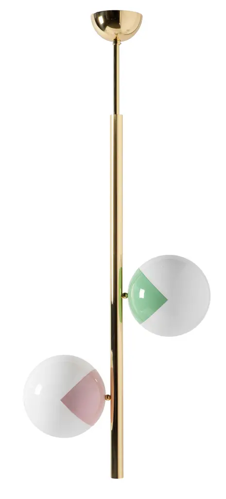 Pop-up chandelier by Magic Circus EditionsDimensions: W 58 x H 155 cm diam sphere 25 cmMaterials: Smooth brass, glossy mouth blown glassAvailable finishes: Brass, nickel, matte black tube + brass, matte black tube + NickelRethinking, reimagining, redesigning familiar objects that we look at every day without ever really seeing them and using light to tell stories, this how Marie-Lise Féry sees her work. Offering a new take on our urban heritage, changing our perspective through her work on scale and usage. Since 2015, Magic Circus Éditions has been setting the world of lighting ablaze, creating airy, playful and magical designs that merge retro with sleek and contemporary. A free-spirited antiquarian, founder Marie-Lise Féry draws inspiration from the world of cabarets and the magic of the circus to give shape to imaginative, fun and playful collections. The air of magic she breathes into her work reveals a wealth of interpretations and widens possibilities for creative interiors. The combination of traditional know-how — outstanding craftsmanship — and her imaginative take on historical, everyday objects lends an unexpected and charming quality to her creations.Féry’s lights are designed just like magic lanterns — precursor to modern-day cinema —, inspiring wonder through oversized, seemingly weightless compositions and understated references. Each collection has its own inspiration: the first models of street lighting for Collection 01; the happy memories of funfairs, sweets and balloons for her latest collection Balloon; the Far East for Collection 02; and the colourful, carefree spirit of the 70s for Pop-Up, released in 2019. Magic Circus Éditions draws on airy designs, dream-like inspirations, colours and fun to create a sense of enchantment.Magic Circus Éditions founder Marie-Lise Féry was born in Paris. After studyingart business, she moved to New York to start her career. Fascinated by the city’s architecture, she found an endless source of inspiration in the Big Apple’s monumental decors. Returning to France to settle down in Lyon, she opened an antiques gallery named Un Château en Espagne, and started telling her own stories through objects she gleaned on markets all around the country. A way for her to perpetuate her mother’s motto: “Objects with a soul will always belong”. Since 2015, the year she established Magic Circus Éditions, she has moved on to lighting as a new medium for telling her stories, bringing the magic of the show into home interiors. With her love for the circus, turn-of-the-century cabarets and music halls, Marie-Lise Féry’s love of unusual objects has remained strong, but now prefers to focus her attention on pieces she has imagined herself. With a fun and light-spirited approach, she creates a bold visual effect that elicits instant attraction. She collaborates with some of Europe’s greatest artisans, from Prague and Murano to Clermont-Ferrand, working for instance with a Czech company specialising in sculpting glass using a diamond-blade saw, or an auto body shop renowned for their work with lacquers. The refinement of shapes and finishes, bespoke designs and technical excellence all contribute to creating pieces that inspire surprise and wonderment. In the manner of Wes Anderson in Grand Budapest Hotel, blending together elegance, humour and unexpected details, her designs never fail to surprise. Attentive to the effect of her designs both in daylight and at night, Marie-Lise Féry takes us on a journey through space (from outside to inside) and time (from yesterday to today).