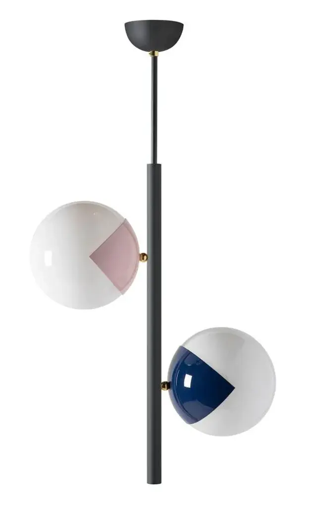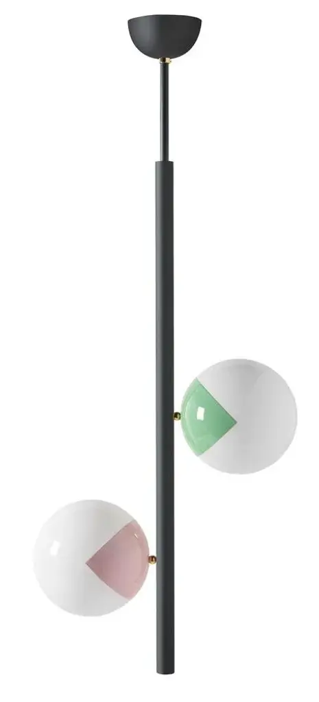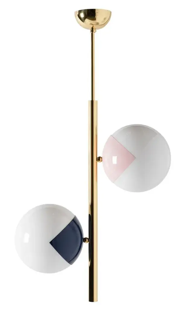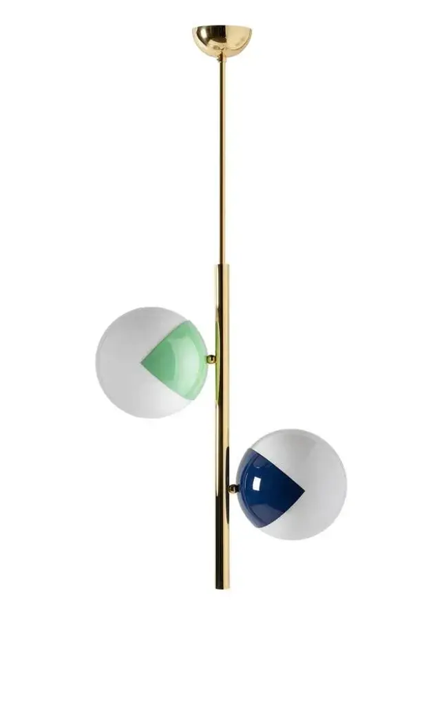 Pair of pop up chandeliers 135 by magic circus editions. Dimensions: w 58 x h 135 cm. Measure: diameter sphere 25 cm. Materials: smooth brass and glossy mouth blown glass. Other finishes available separately: brass, nickel, matte black tube and brass, matte black tube and nickel. Rethinking, reimagining, redesigning familiar objects that we look at every day without ever really seeing them and using light to tell stories, this how marie-lise féry sees her work. Offering a new take on our urban heritage, changing our perspective through her work on scale and usage. Since 2015, magic circus éditions has been setting the world of lighting ablaze, creating airy, playful and magical designs that merge retro with sleek and contemporary. A free-spirited antiquarian, founder marie-lise féry draws inspiration from the world of cabarets and the magic of the circus to give shape to imaginative, fun and playful collections. The air of magic she breathes into her work reveals a wealth of interpretations and widens possibilities for creative interiors. The combination of traditional know-how — outstanding craftsmanship — and her imaginative take on historical, everyday objects lends an unexpected and charming quality to her creations. Féry’s lights are designed just like magic lanterns — precursor to modern-day cinema —, inspiring wonder through oversized, seemingly weightless compositions and understated references. Each collection has its own inspiration: the first models of street lighting for collection 01; the happy memories of funfairs, sweets and balloons for her latest collection balloon; the far east for collection 02; and the colorful, carefree spirit of the 1970s for pop-up, released in 2019. Magic circus éditions draws on airy designs, dream-like inspirations, colors and fun to create a sense of enchantment. Magic circus éditions founder marie-lise féry was born in paris. After studyingart business, she moved to new york to start her career. Fascinated by the city’s architecture, she found an endless source of inspiration in the big apple’s monumental decors. Returning to france to settle down in lyon, she opened an antiques gallery named un château en espagne, and started telling her own stories through objects she gleaned on markets all around the country. A way for her to perpetuate her mother’s motto: “objects with a soul will always belong”. Since 2015, the year she established magic circus éditions, she has moved on to lighting as a new medium for telling her stories, bringing the magic of the show into home interiors. With her love for the circus, turn of the century cabarets and music halls, marie-lise féry’s love of unusual objects has remained strong, but now prefers to focus her attention on pieces she has imagined herself. With a fun and light-spirited approach, she creates a bold visual effect that elicits instant attraction. She collaborates with some of europe’s greatest artisans, from prague and murano to clermont-ferrand, working for instance with a czech company specializing in sculpting glass using a diamond-blade saw, or an auto body shop renowned for their work with lacquers. The refinement of shapes and finishes, bespoke designs and technical excellence all contribute to creating pieces that inspire surprise and wonderment. In the manner of wes anderson in grand budapest hotel, blending together elegance, humour and unexpected details, her designs never fail to surprise. Attentive to the effect of her designs both in daylight and at night, marie-lise féry takes us on a journey through space (from outside to inside) and time (from yesterday to today). up to 250v (europe/uk standard).
