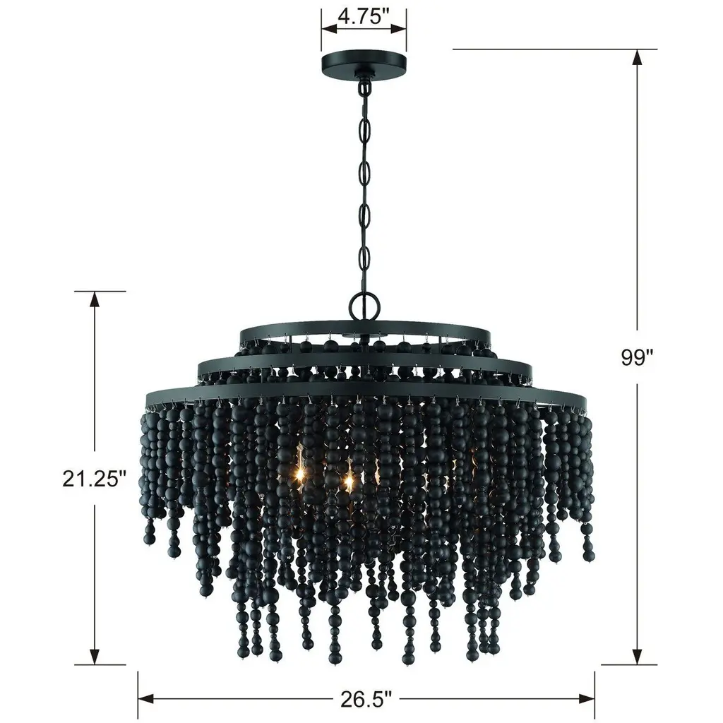 Poppy 6 Light Matte Black Chandelier