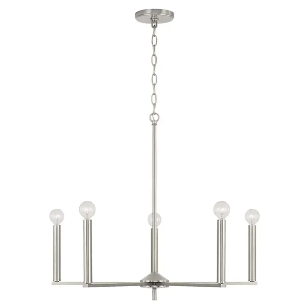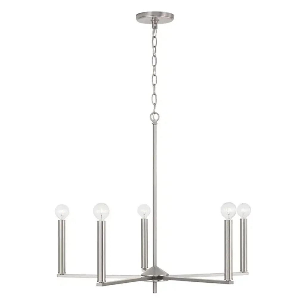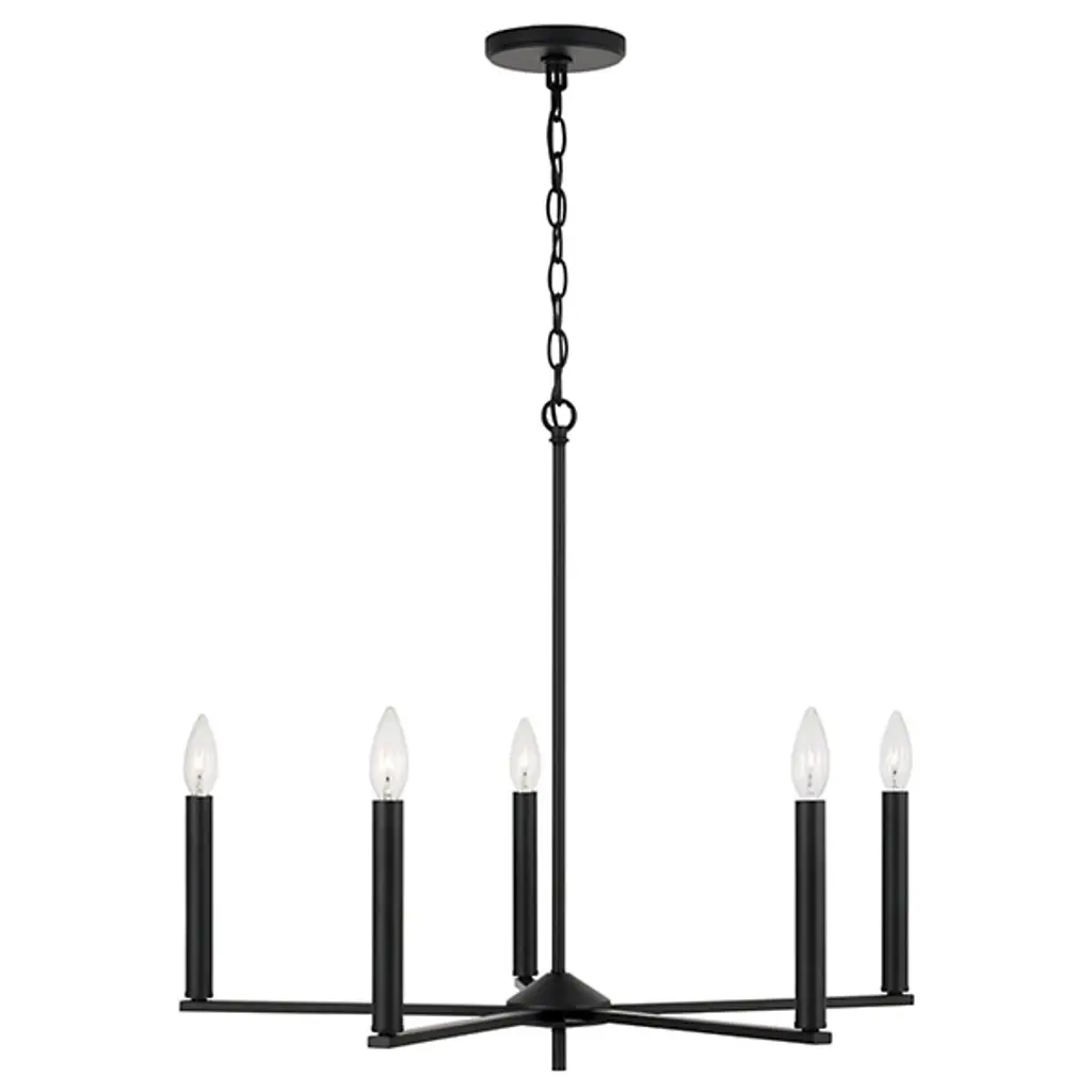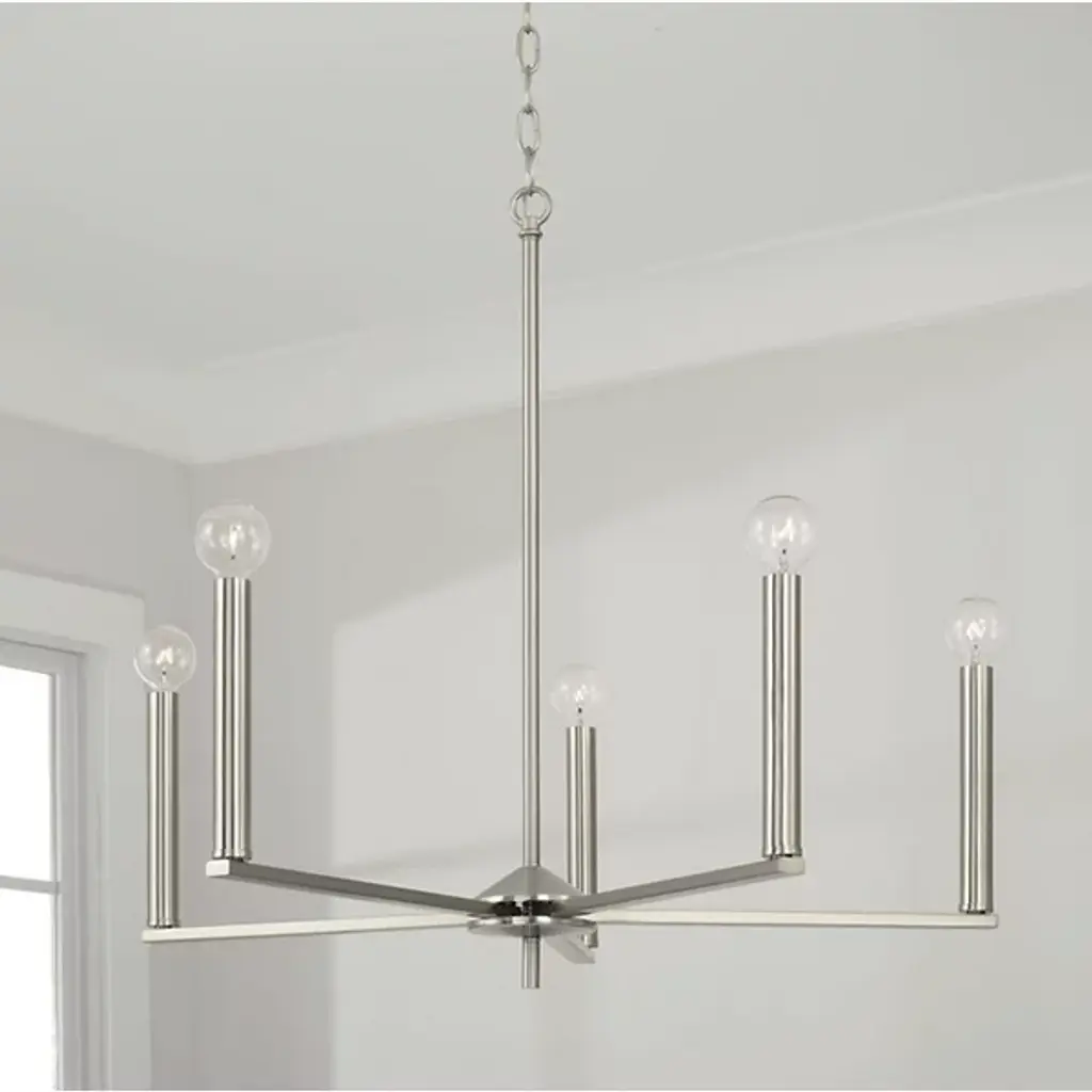 The Portman Chandelier from Capital Lighting is a marriage of industrial and contemporary styles. This distinctive fixture features a linear design, with arms that seamlessly blend form and function. Crafted from durable metal, Portman boasts a single-tier formation with a balance of simplicity and sophistication. Illuminate your space with the brilliance of integrated LEDs, providing brilliant illumination. The linear arms suspend the LEDs in midair, creating a captivating visual effect.
