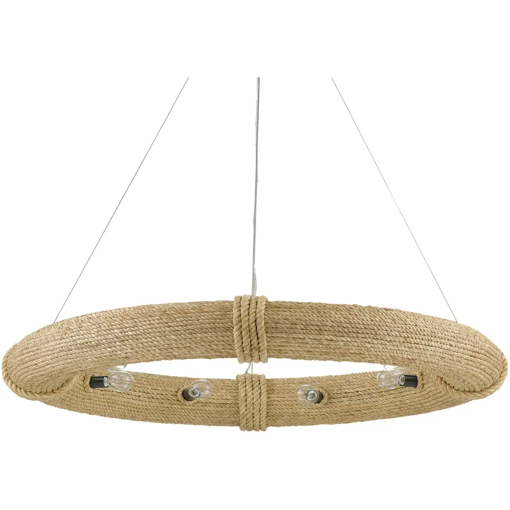 Portmeirion 8 Light 37 Inch Satin Black/abaca Rope Chandelier Ceiling Light