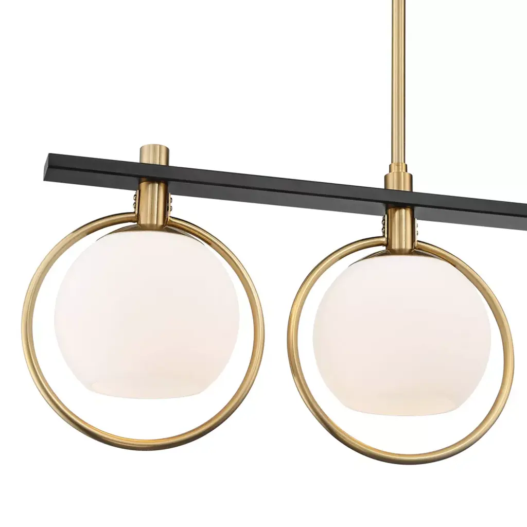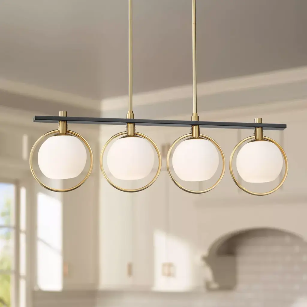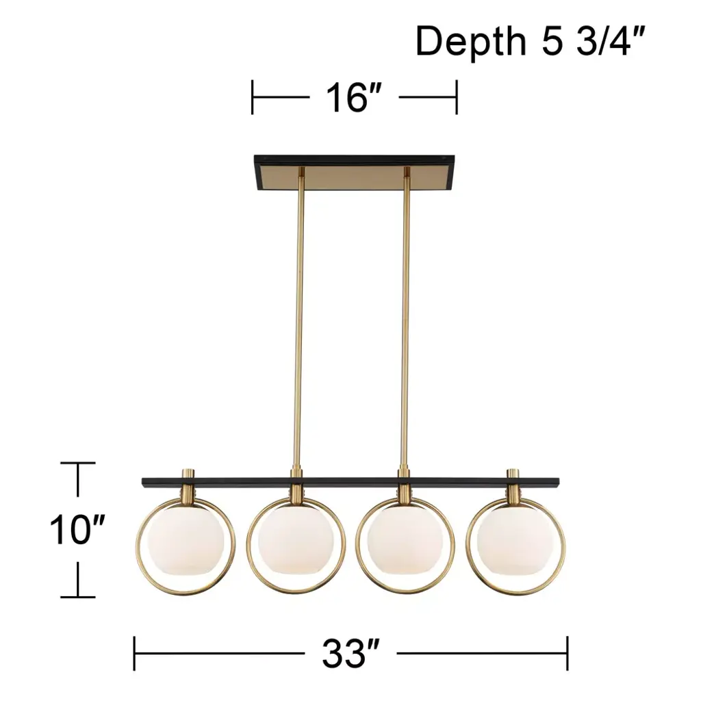 Possini Euro Design Carlyn Brass Black Linear Island Pendant Chandelier 33" Wide Modern White Glass Shade 4-light Led Fixture For Dining Room Kitchen