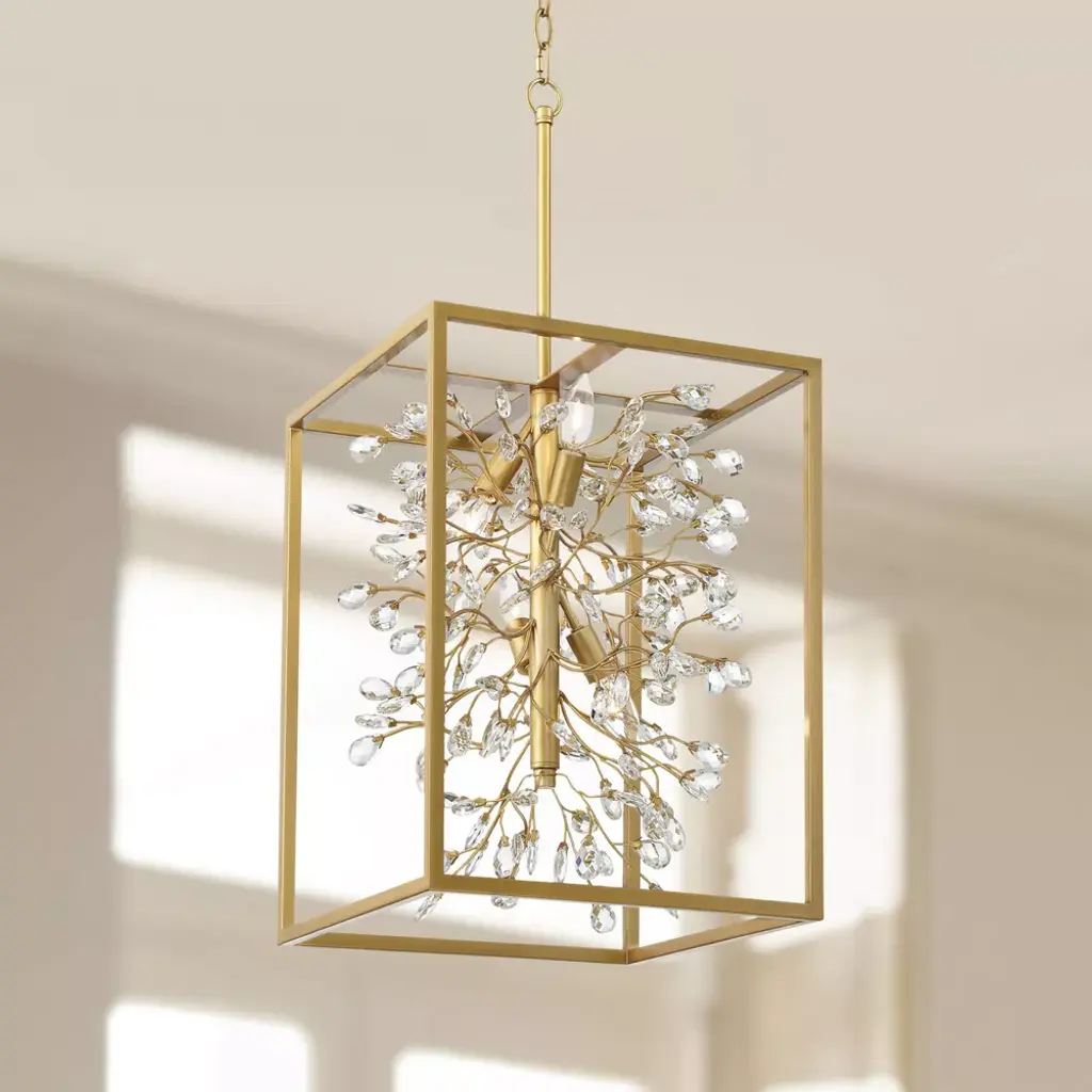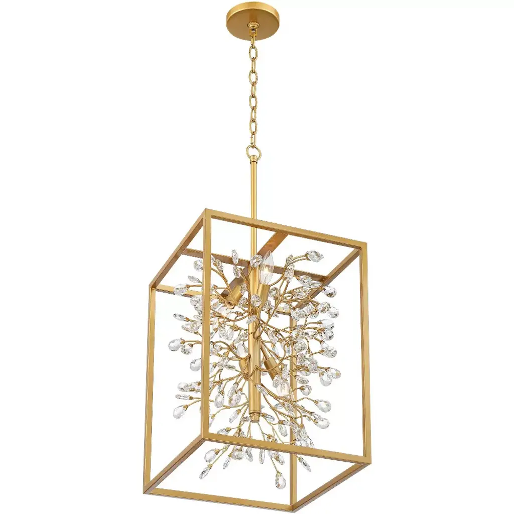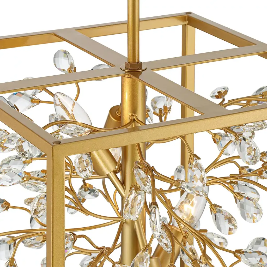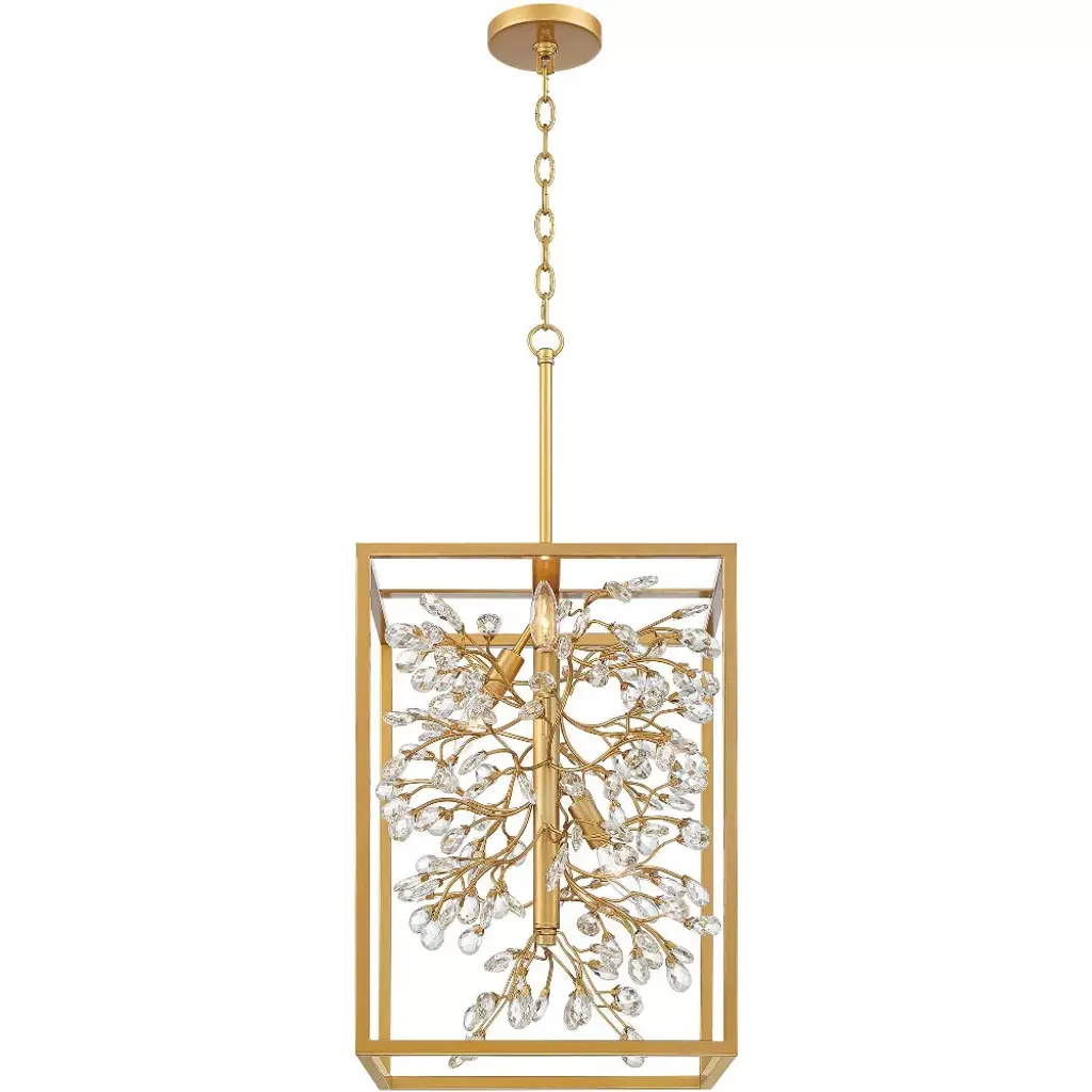 Take nature-inspired decor to the next level with this contemporary four-light pendant from Possini Euro Design®. The open rectangular frame comes in a warm gold finish, and inside is a riot of crystal buds on silver branches. This modern pendant light will bring maximum sparkle and style to your kitchen or dining room.