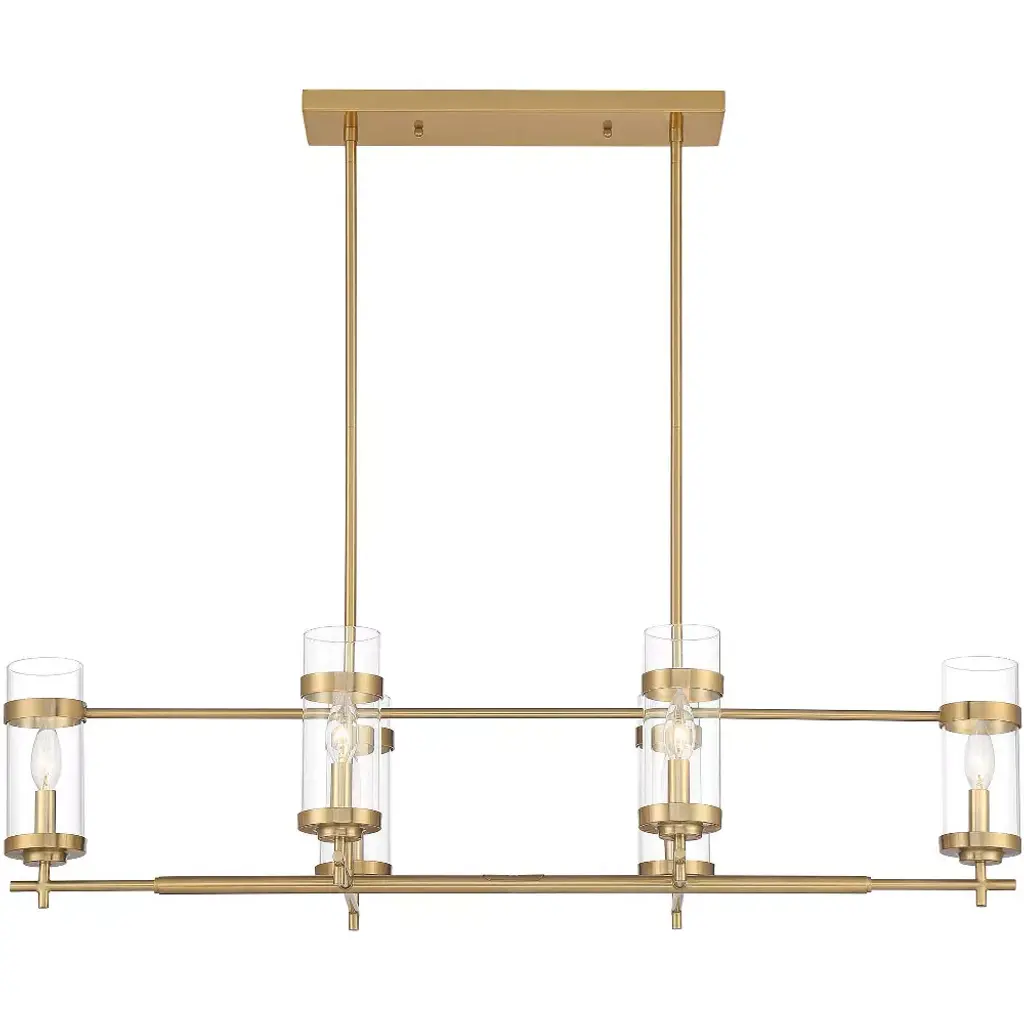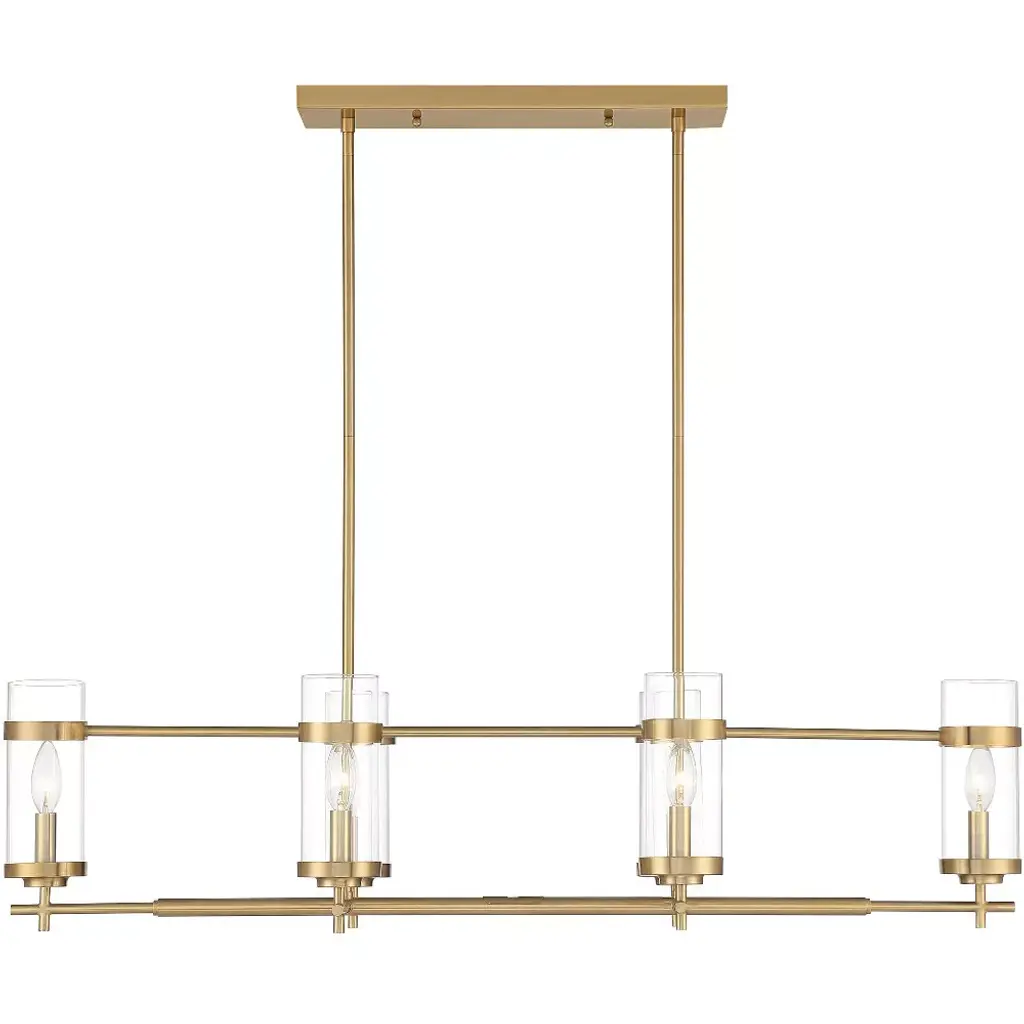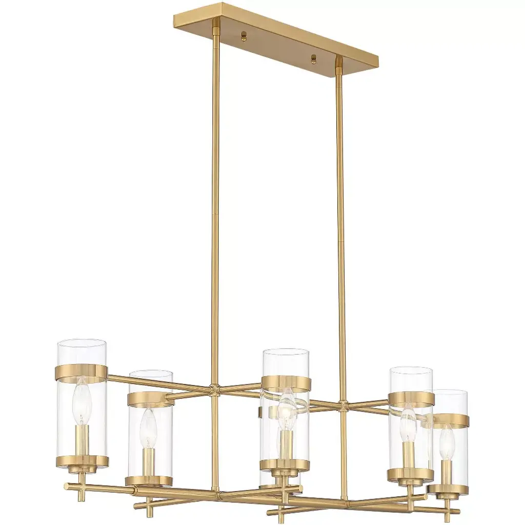 Long and lean, this modern six-light island pendant brings elements of glamour and simplicity to your kitchen. From Possini Euro Design®, it boasts a gold finish frame with six cylindrical, clear glass shades. Slim rods intersect to create the frame and decorative collars accentuate the shades to perfection, adding depth and detail.