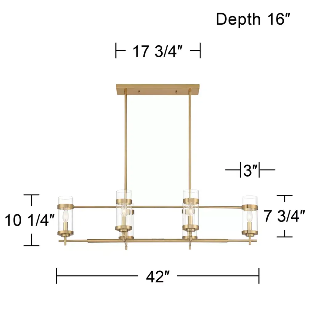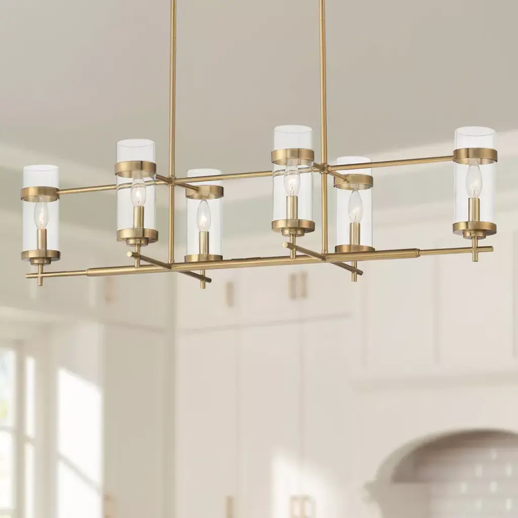 Possini Euro Design Mikel Soft Gold Linear Island Pendant Chandelier 42" Wide Modern Clear Glass Shade 6-light Fixture For Dining Room House Kitchen
