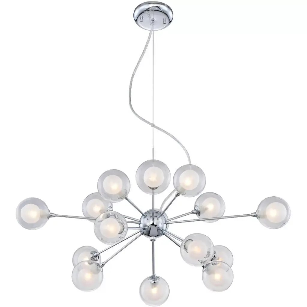 Have a little fun with your decor with this Sputnik-style chandelier from the Possini Euro Design collection. This celestial pendant chandelier features 15 frosted glass lights within larger clear glass balls on metal rods. These glass balls surround a chrome finish ball in the center. A beautiful addition to a modern or contemporary home.