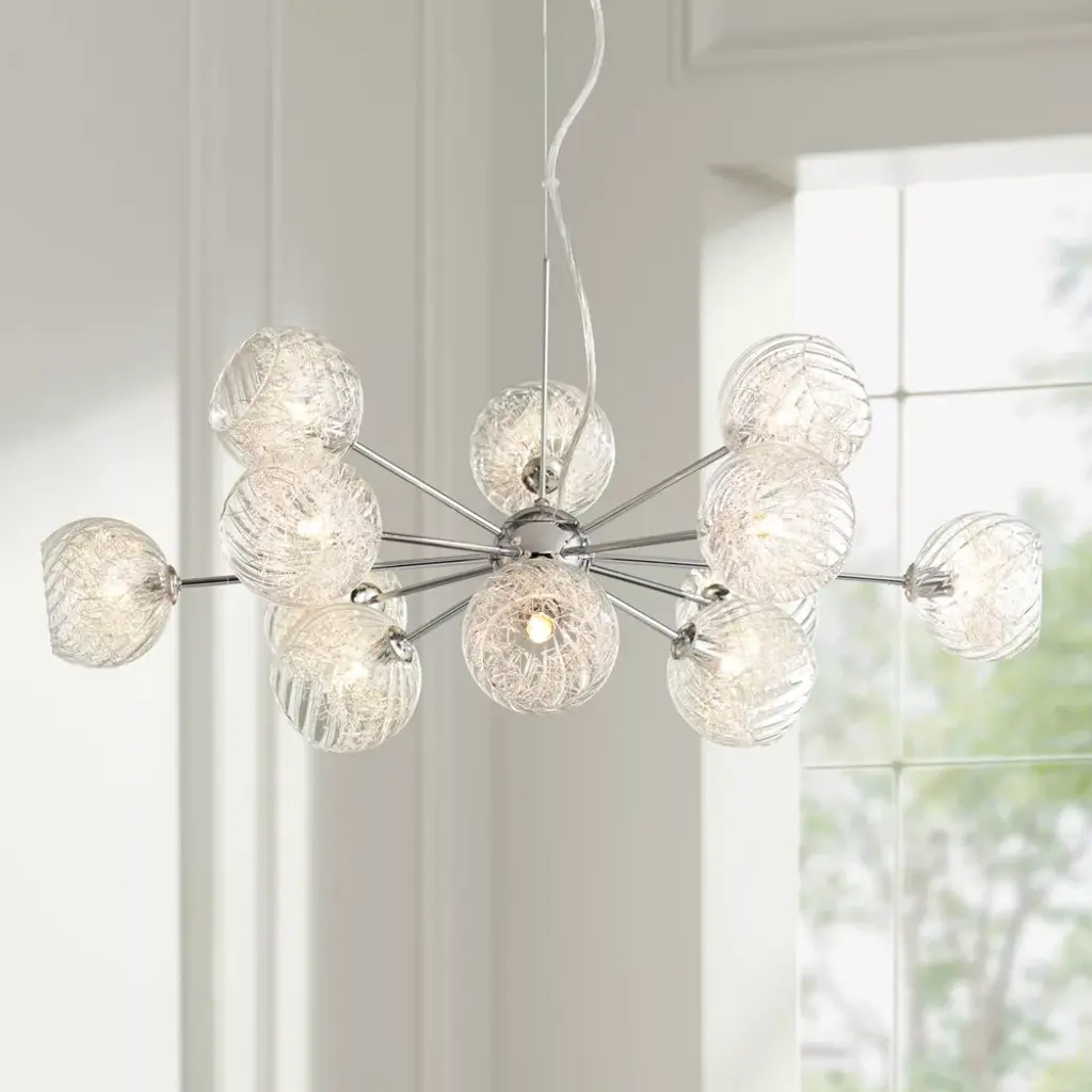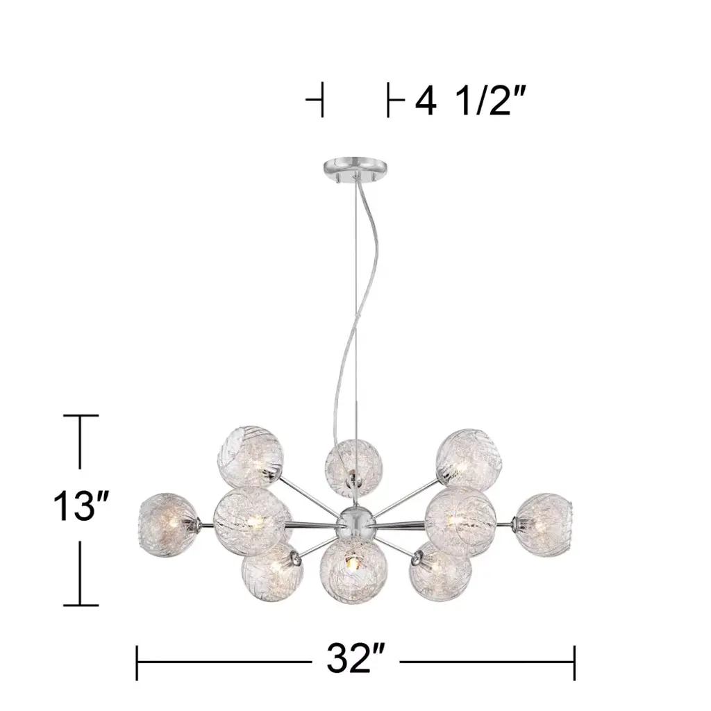 Possini Euro Design Wired Chrome Chandelier Lighting 32" Wide Modern Sputnik Art Glass 12-light Fixture For Dining Room House Foyer Kitchen Island