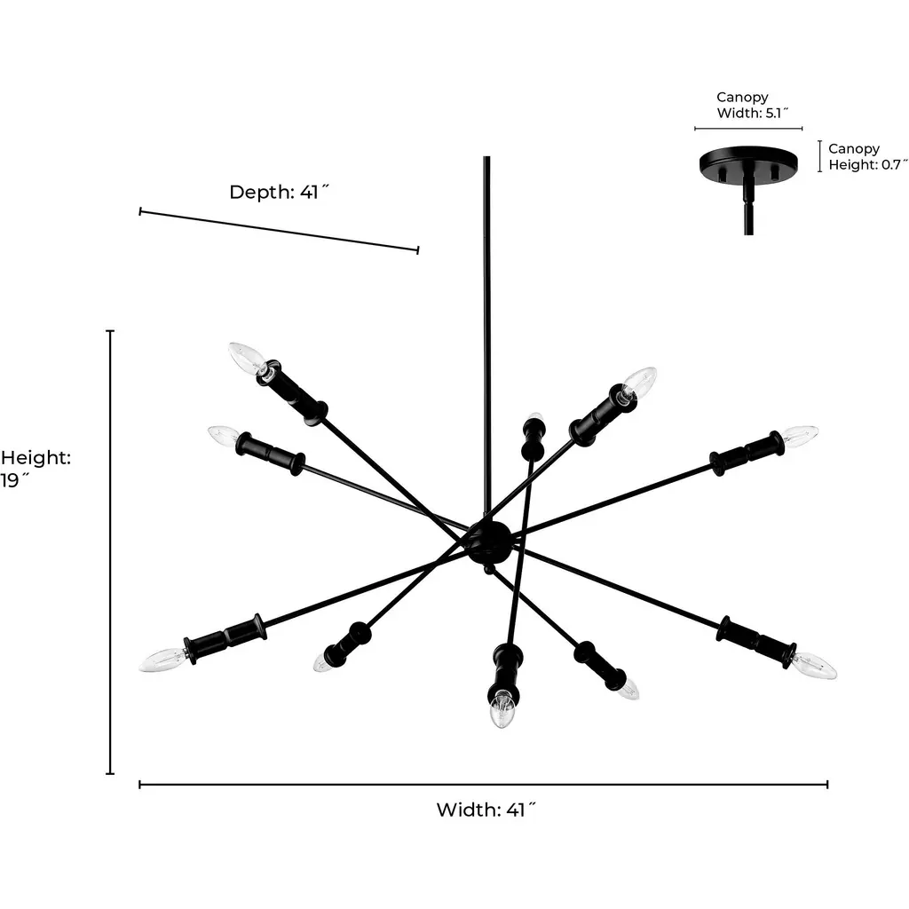 Potiss 10 Light 41 Inch Matte Black Chandelier Ceiling Light