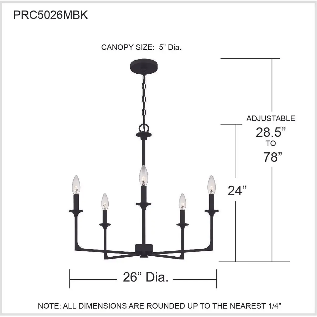 Prescott 5 Light 26 Inch Matte Black Chandelier Ceiling Light