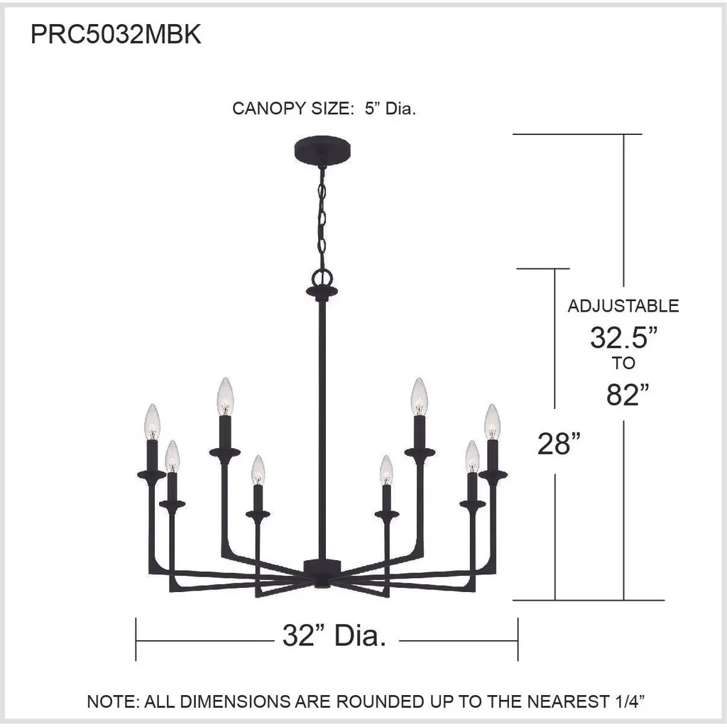 Prescott 8 Light 32 Inch Matte Black Chandelier Ceiling Light
