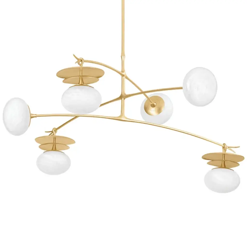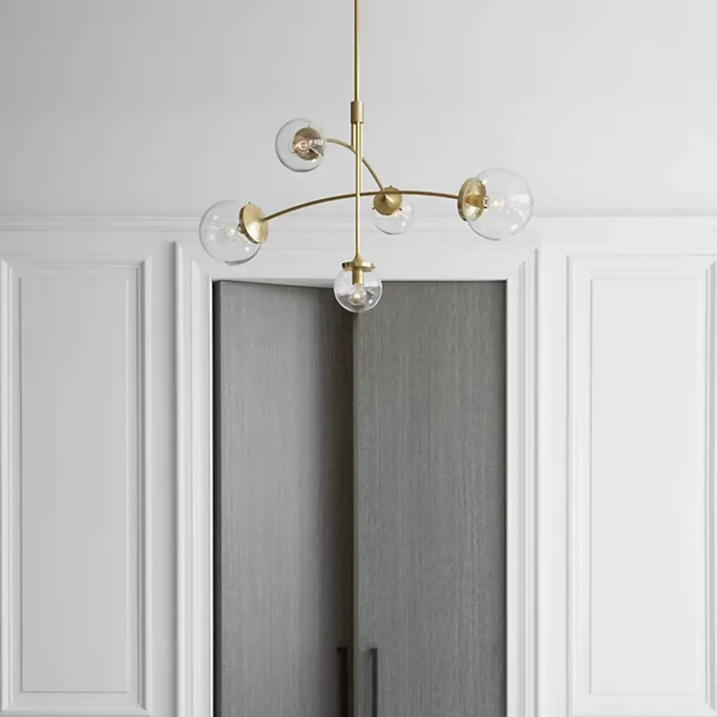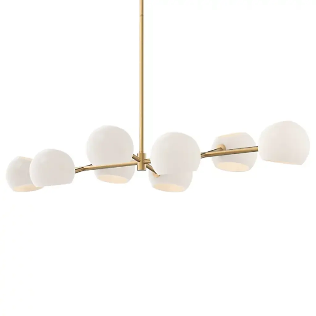 The Prescott Medium Chandelier from Visual Comfort Signature, formerly known as Visual Comfort, adds levity to one’s room through the playful quality of its movement and plump forms. The modern design closely resembles a gravity-defying mobile sculpture. Its slender metal arms feel balanced to perfection as they cross over each other in an asymmetric visual. The shine of the metal enhances the glass at the end. Crafted into globes, the glass shades appear like beautiful bubbles floating across the air. When turned on, each globe fills up with a pleasant warmth to create a soothing atmosphere.